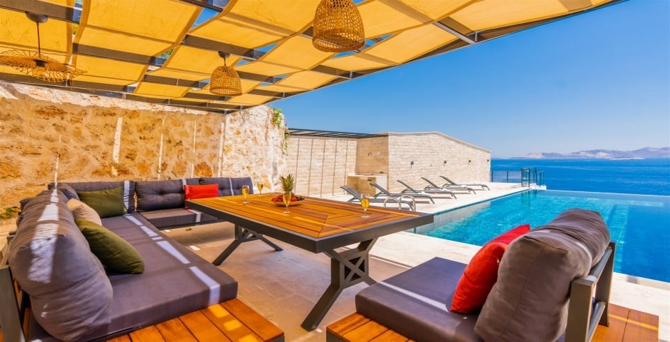 Villa Altay, Kaş'a araçla 15 dakikalık bir mesafede bulunmaktadır. Dört yatak odası ve ferah bir yaşam alanı sunan salonu ile 8 kişinin rahatlıkla konaklayabileceği villamızın tüm odalarında klima bulunmaktadır. Her türlü donanım ve ekipmanları bulunan açık mutfağında, tatiliniz boyunca evinizdeki rahatlığı bulacaksınız. Geniş balkonu ve terası ile, aileniz ve arkadaşlarınızla birlikte unutulmaz Akdeniz akşamları sizi bekliyor! Villa Altay Kaputaş Plajı'na araçla sadece 5 dakikada bulunmaktadır. Tatiliniz boyunca Kalkan ve Kaş'tan tekne turlarına katılıp Akdeniz'in güzelliklerini keşfedebilir, tarihe yolculuk yapabilir, yamaç paraşütü ve rafting gibi heyecan dolu sportif aktivitelere de katılabilirsiniz.