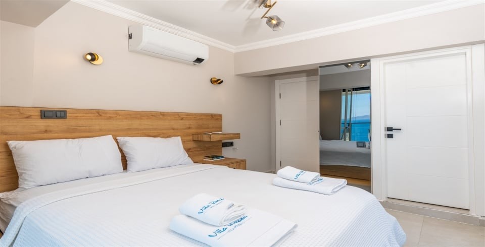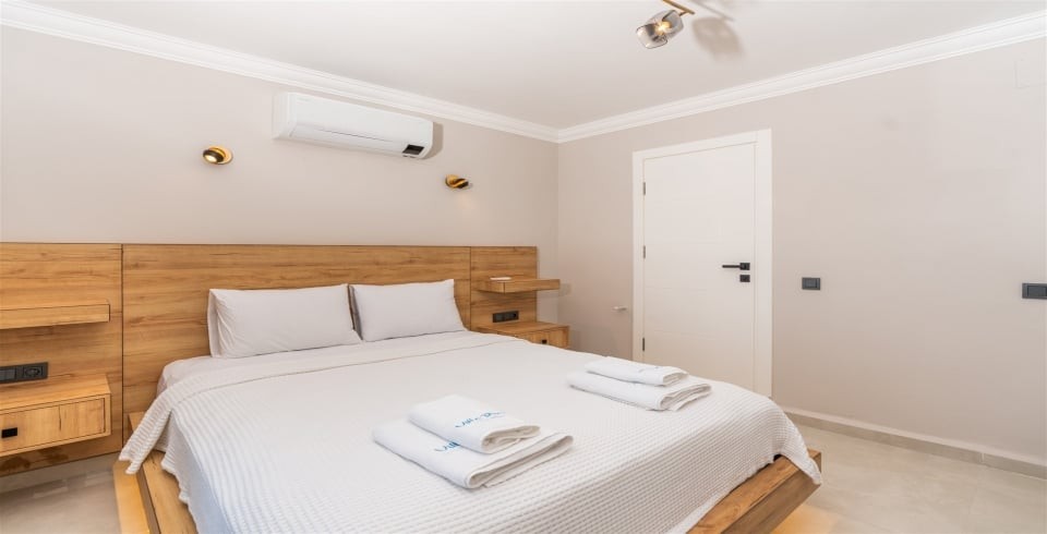 1. Yatak Odası: 1 adet çift kişilik yatak, elbise dolabı, makyaj masası, klima ve banyo-tuvalet yer almaktadır.
