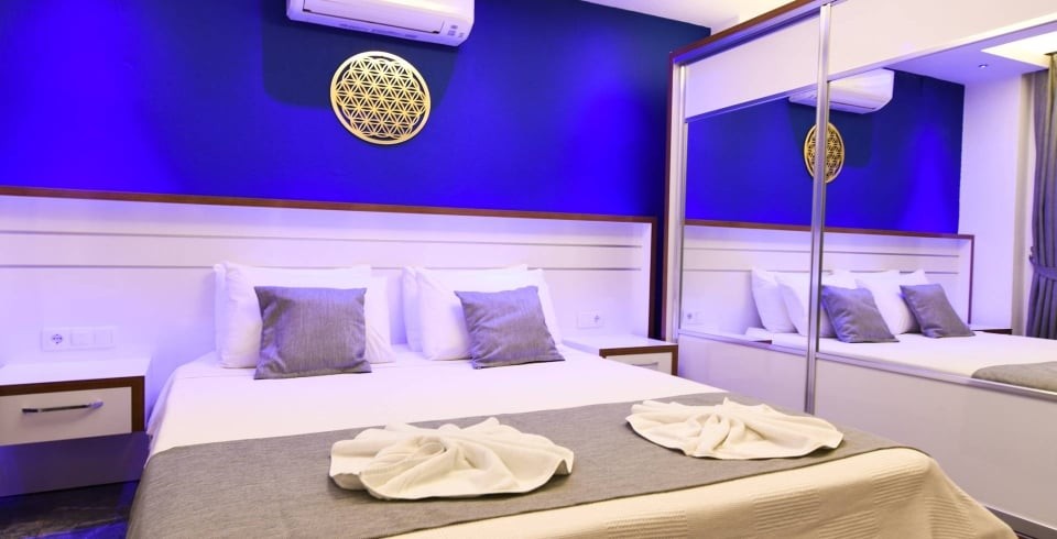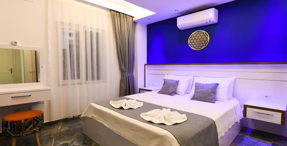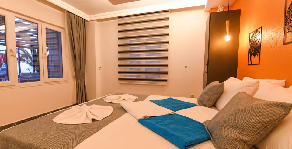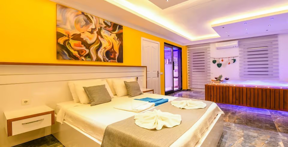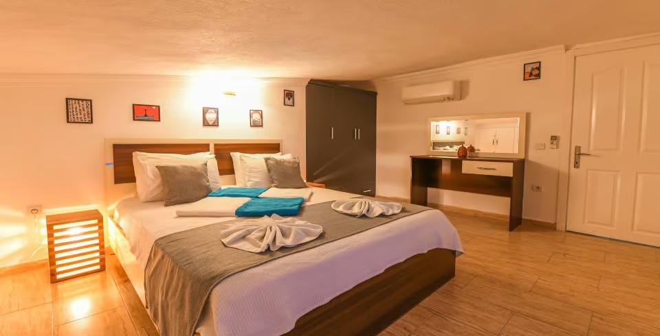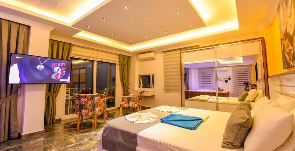 4. Yatak Odası: Çift kişilik yatak, Makyaj masası, Komidin, Klima, Elbise dolabı, Banyo ve Balkona  bulunmaktadır.