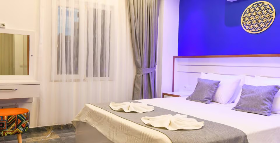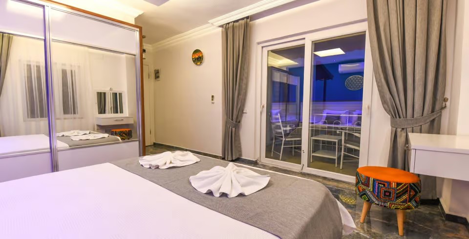 3. Yatak Odası: Çift kişilik yatak, Makyaj masası, Komidin, Klima, Elbise dolabı, Banyo ve Balkona  bulunmaktadır.