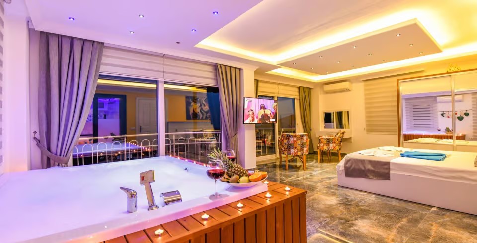 1 Yatak Odası: Çift kişilik yatak, Makyaj masası, Komidin,jakuzı Klima, Elbise dolabı, Banyo ve Balkona  bulunmaktadır.