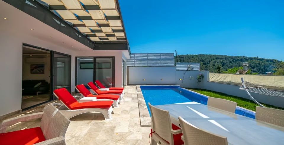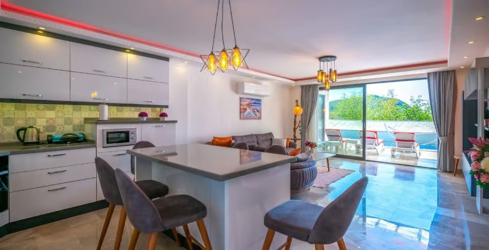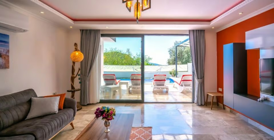 Kalkan Üzümlü bölgesinde yer almaktadır. Bulunduğu konum itibari ile doğa manzaralı seçenekler arasında olup Kalkan şehir merkezine özel araç ile 15 dakika mesafede yer almaktadır.2 yatak odası ile toplam 4 kişi konaklama kapasitesine sahiptir. Dış gözlerden uzak bir tatil geçirmek isteyenler için açık havuz alanı korunaklarıyla beraber son derece uygun bir seçenektir. Ayrıca kapalı havuzu ile kış aylarında da tercih edilebilecek bir seçenektir. Villamızda Masa Tenisi ve jakuzi bulunmaktadır.