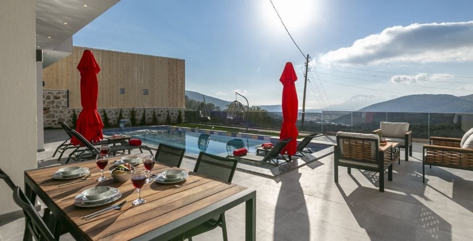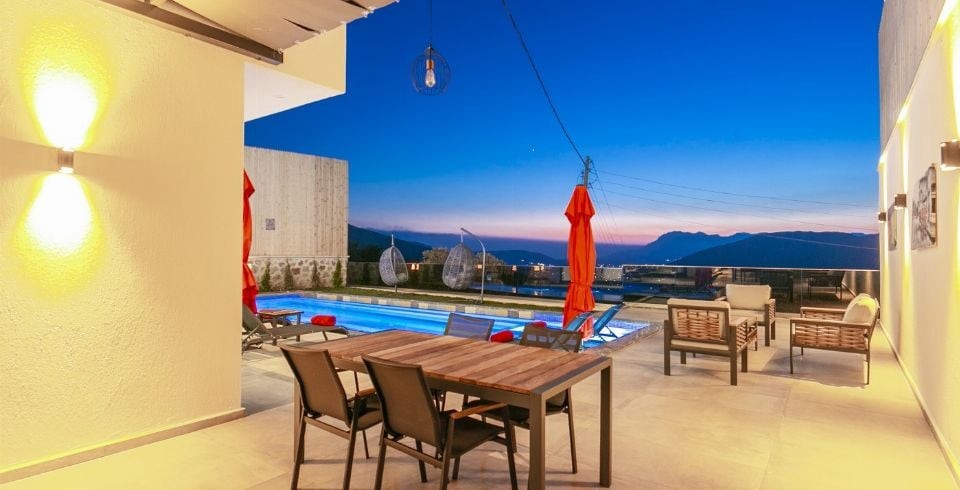 Kalkan Akbel İncebel mevkiinde 2 yatak odalı 4 kişilik kapasiteye sahip olan villamız modern şık eşyalarla dizayn edilmiş olup çekirdek aileler ve balayı çiftleri için ideal seçeneklerden bir tanesidir. Villamızda ısıtmalı kapalı havuz ve yerden ısıtma sistemi bulunmaktadır. Ailenizle ve arkadaşınızla eğlenceli vakit geçirebilmeniz için aktivite için her şey villa vizyonda düşünülmüştür