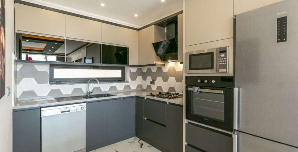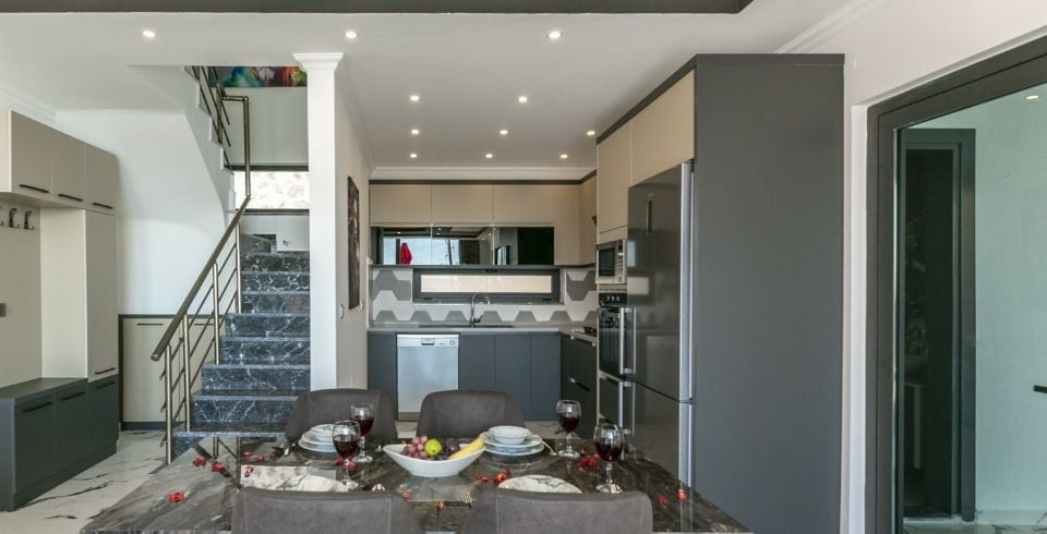 Mutfak: Amerikan mutfak içerisinde buzdolabı, bulaşık makinası, çamaşır makinası, yemek masası, mikrodalga fırın, 4’lü ocak, davlumbaz, fırın, elektrikli su ısıtıcı, yemek takımı, tava ve tencereler, çatal, bıçak takımı bulunmaktadır.