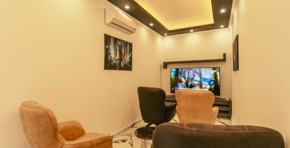 Salon: Salon içerisinde modern oturma grubu, uydu alıcı, LCD TV, internet için modem, klima, WC ve havuz terasına çıkış bulunmaktadır.