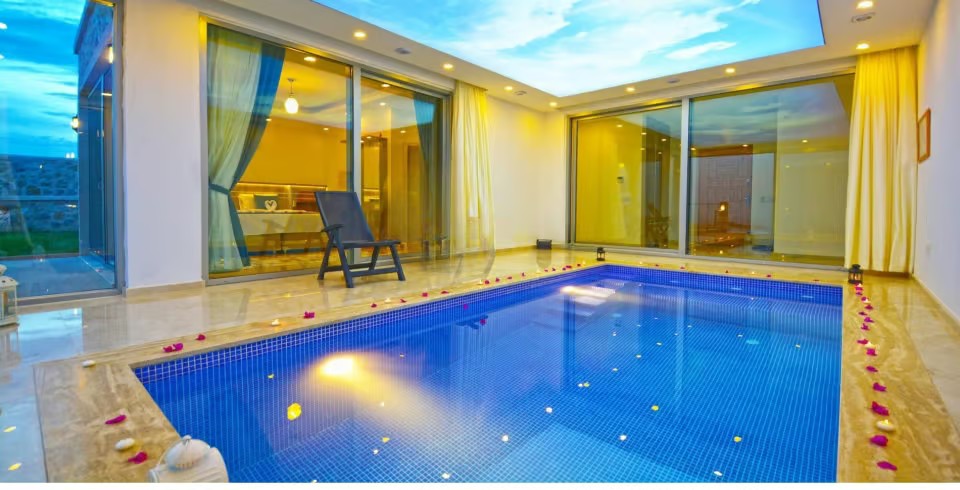 Not: Villamızın kapalı havuzu ısıtmalı olup, haftalık 5000 TL ücret karşılığında hizmete sunulmaktadır ( Max 25-29 derece )