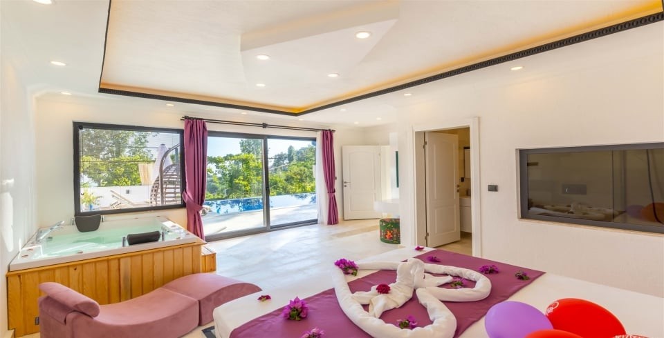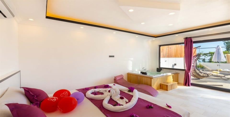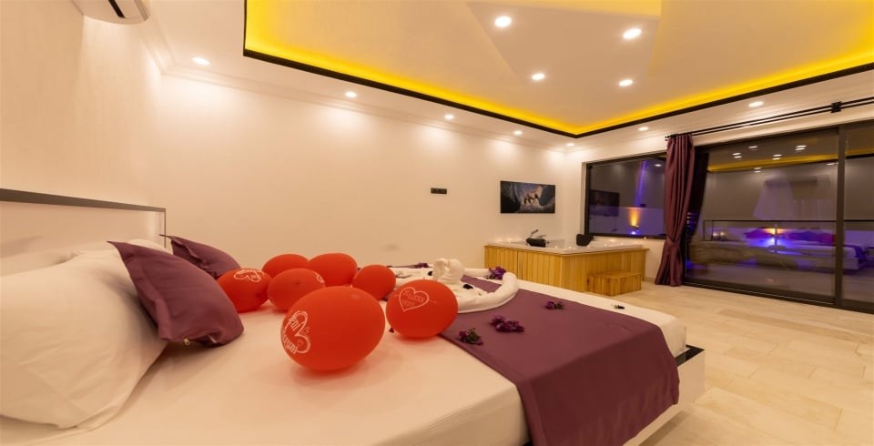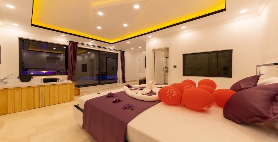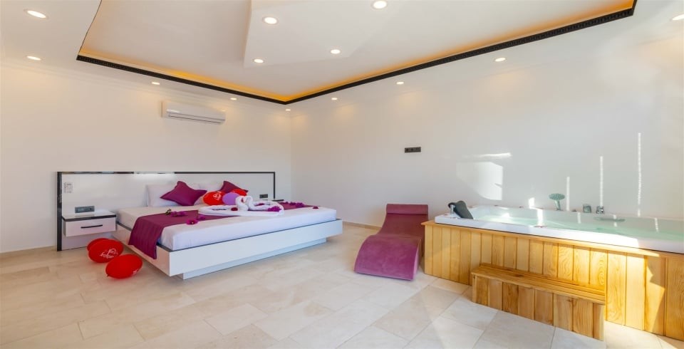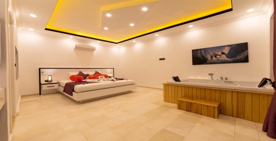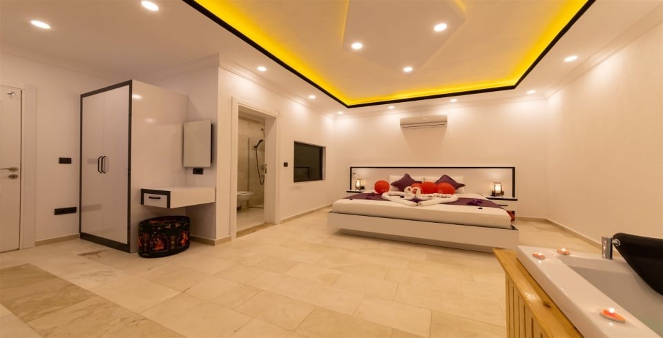 Çift kişilik yatak, komodin ,klima, makyaj masası, elbise dolabı, jakuzi, banyo ve tuvalet bulunmaktadır.