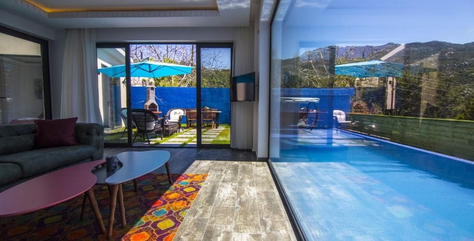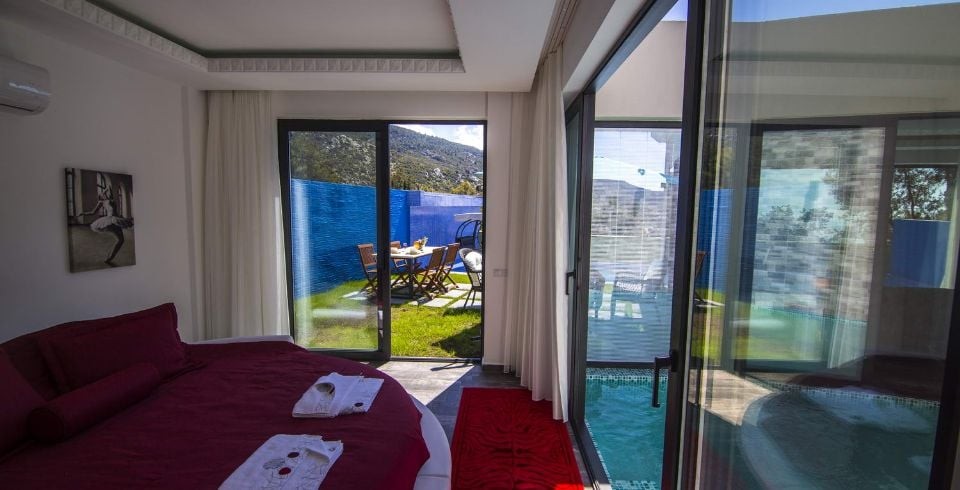 Kalkan İslamlar bölgesinde 1 yatak odalı 2 kişilik kapasiteye sahip olan balayı villamız modern şık eşyalarla dizayn edilmiş olup balayı çiftleri için ideal seçeneklerden bir tanesi olan villamızın yatak odasının içerisinde kapalı havuzu bulunmaktadır. eşinizle tatil süresince keyifli vakit geçirebilirsiniz.
