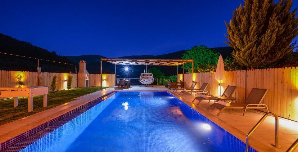 Kiralık yazlık villamız Hacıoğlan mevkisin de konumlanmıştır. 2 yatak odalı 4 kişilik kapasiteye sahiptir. Havuz ve havuz  terası muhafazakar ve korunaklıdır. Muhafazakar ve balayı çiftleri için harika tatil imkanı sağlanmaktadır. Özel yüzme havuzunda çocuk havuzu bulunmaktadır. Balayı süit odasında jakuzi diğer yatak odasında 2 adet tek kişilik yatak bulunmaktadır. Doğa içerisinde olan villamız bahçesinde  salıncak ve langırt  yer almaktadır. Villamızın taş ve ahşap işçiliği  bir arada olup oldukça konforlu ve lüks döşemeler kullanılmıştır. Villamız doğa içerisinde olup en yakın merkeze araç ile 30 dk. mesafede bulunmaktadır.