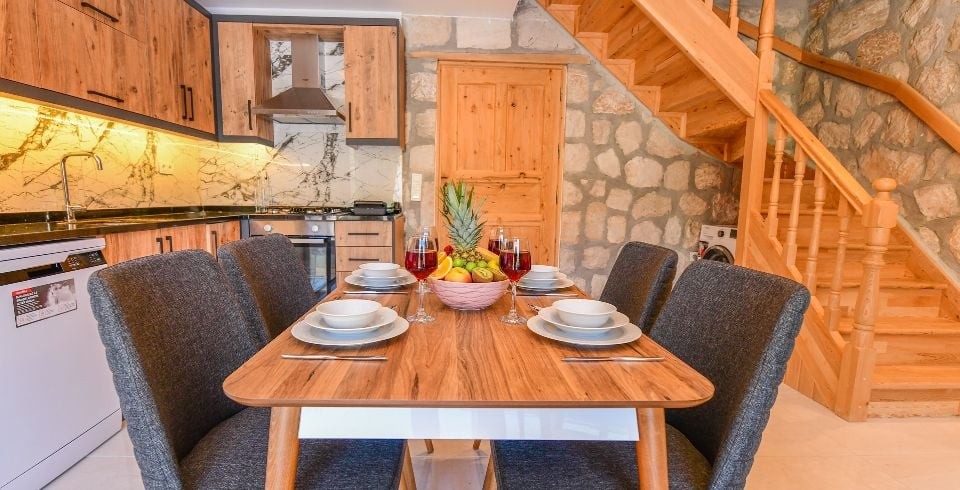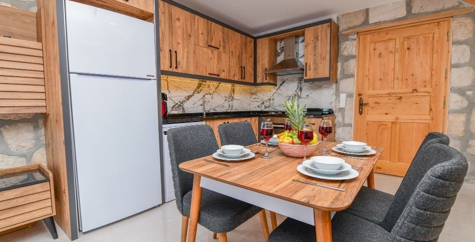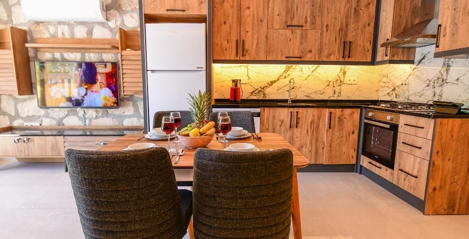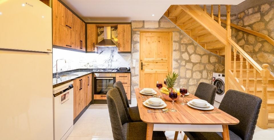 Mutfak : Villamızın mutfağında buzdolabı bulaşık makinası, çamaşır makinası, 4'lü ocak, ketıl, 4 kişilik yemek takımı bulunmaktadır.