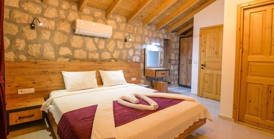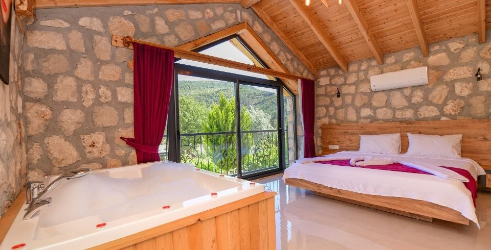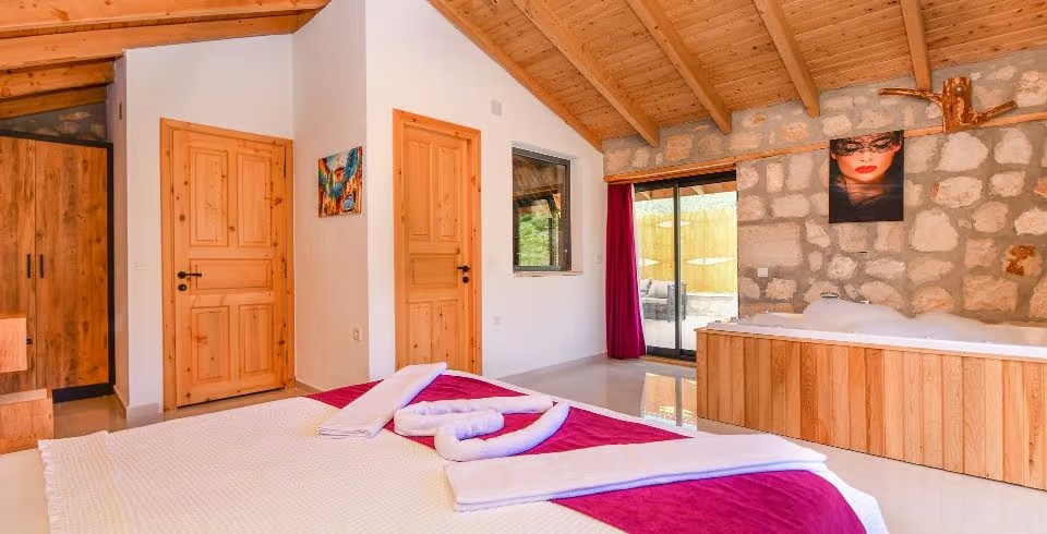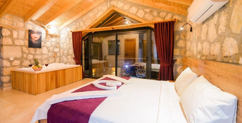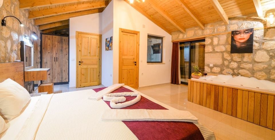 1. Yatak Odası : Çift kişilik yatak, klima, jakuzi, komodin, elbise dolabı, makyaj masası banyo ve tuvalet bulunmaktadır.