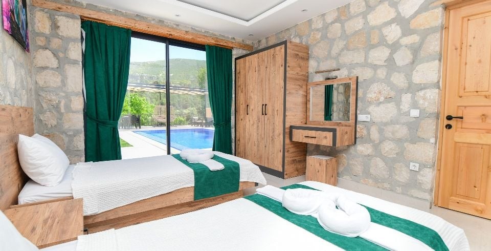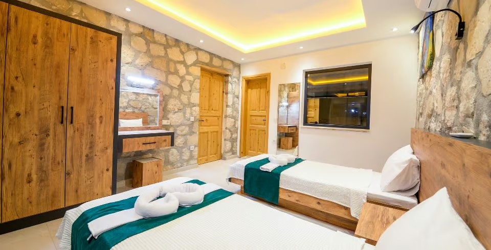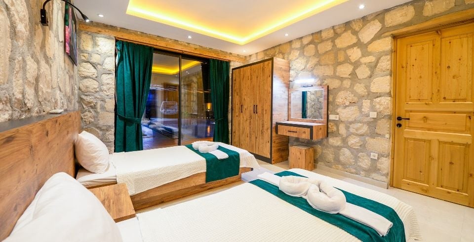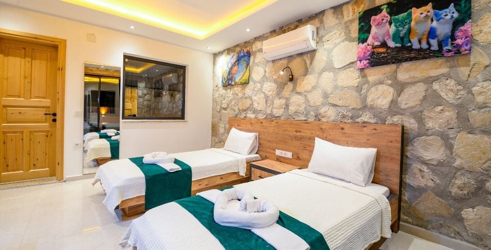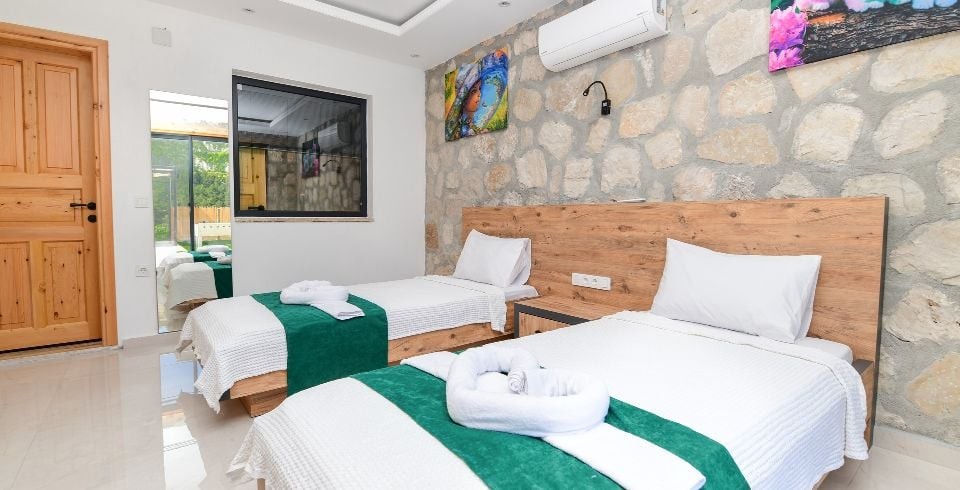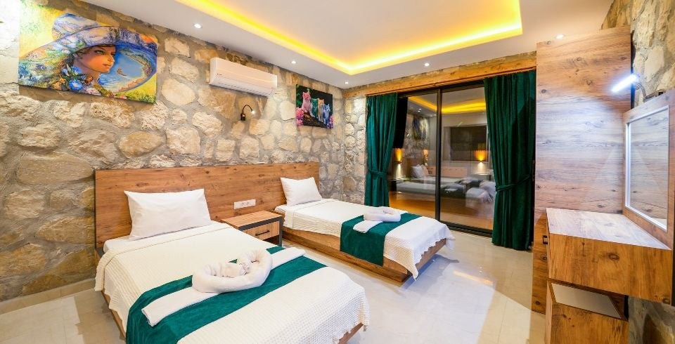 2. Yatak Odası : 2 adet tek kişilik yatak, klima, elbise dolabı, komodin, makyaj masası, banyo ve tuvalet bulunmaktadır.