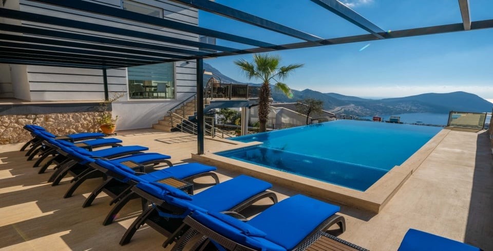 Kalkan merkezinin hemen üzerinde yer alan Villa in the Sky, adından da anlaşılacağı gibi Akdeniz’in büyüleyici manzarasını ayaklar altına seren konumu ile öne çıkıyor. Şehir merkezine çok yakın olmasına rağmen yüksek kotu sayesinde sessiz, huzurlu ve tamamen panoramik bir atmosfer sunan villa; geniş aileler ve kalabalık arkadaş grupları için mükemmel bir tatil deneyimi sağlıyor. Toplam beş yatak odası ve on iki kişiye kadar konaklama imkanı sunan bu özel villa, modern mimarisi, ferah planı ve üst düzey donanımlarıyla Kalkan’daki lüks villa seçenekleri arasında ayrıcalıklı bir yere sahip.