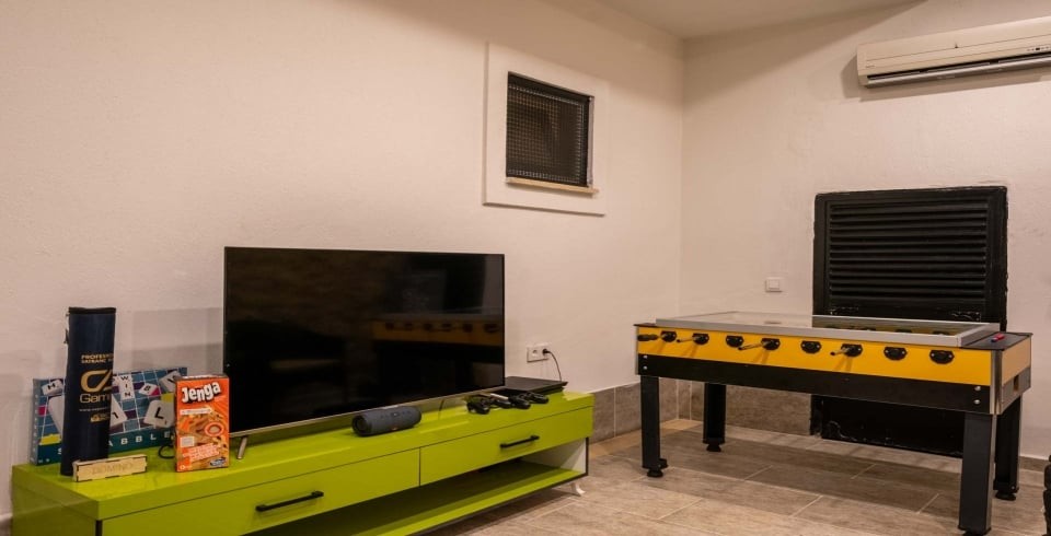 Oyun Odası: Alt katta bulunan oyun odasında PS4 oyun konsolu, TV, langırt, masa tenisi, dart, koşu bandı, egzersiz bisikleti ve kutu oyunları bulunmaktadır.