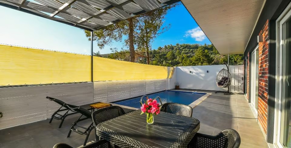 Havuz ve Bahçe: Özel  havuz  bulunmaktadır. yemek masası, barbekü, şezlong ve güneş şemsiyesi bulunmaktadır. Havuz bakımı günlük düzenli olarak görevli tarafından yapılmaktadır.