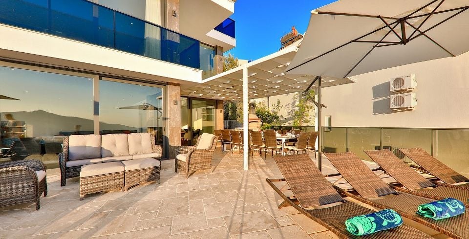 Kalkan Kızıltaş bölgesinde 7 yatak odalı 14 kişilik kapasiteye sahip olan villamız modern şık eşyalarla dizayn edilmiş olup muhteşem deniz manzarasına sahip olan villamız kalabalık aileler ve arkadaş gurupları için ideal seçeneklerden bir tanesi olup ailenizle ve arkadaşlarınızla tatil süresince keyifli vakit geçirebilirsiniz. Villa Luxury kalkan merkeze ve plaja yakın konumda yer almaktadır.