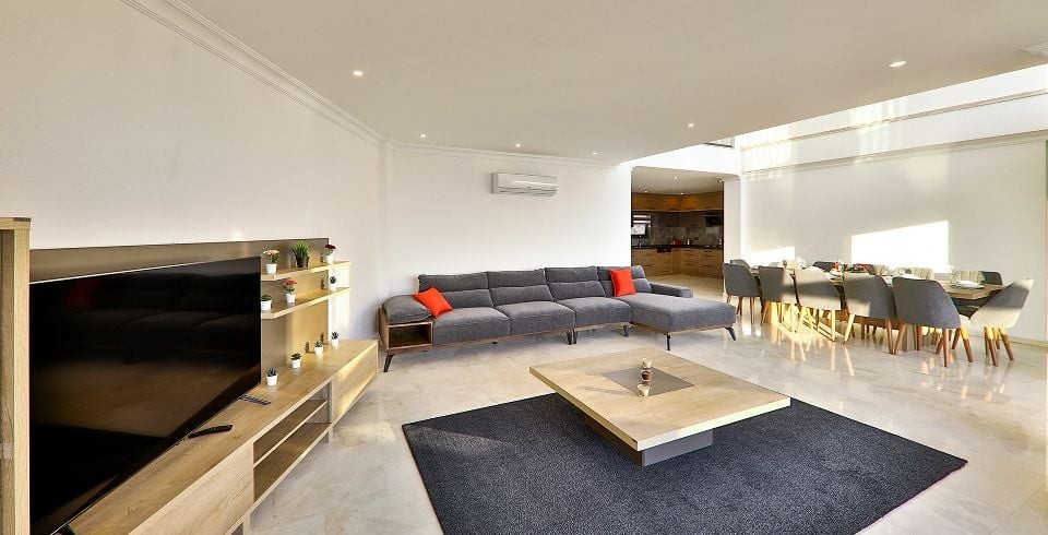 Salon: Salon içerisinde modern oturma grubu, uydu alıcı, LCD TV, internet için modem, klima, WC ve havuz terasına çıkış bulunmaktadır.
