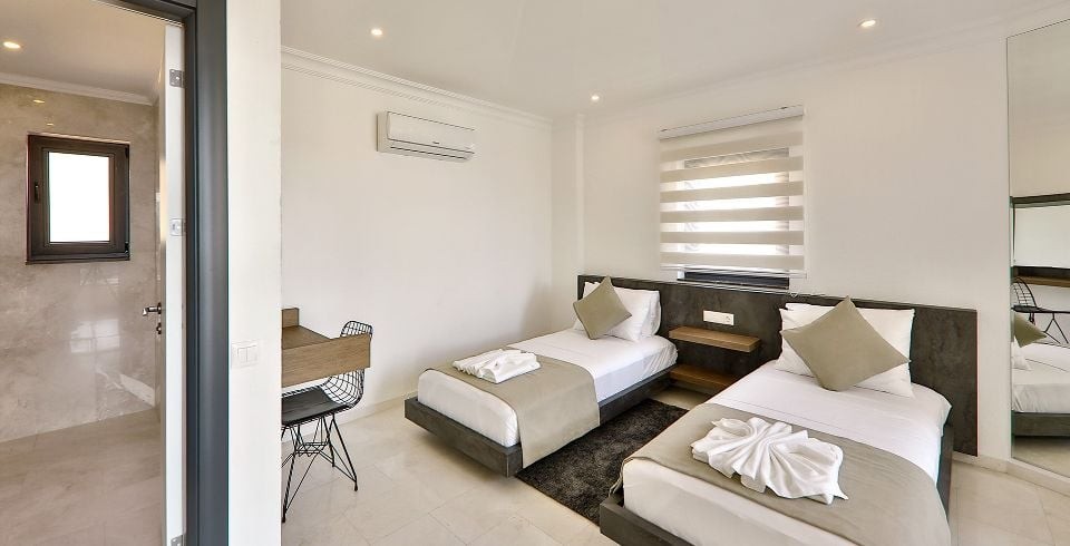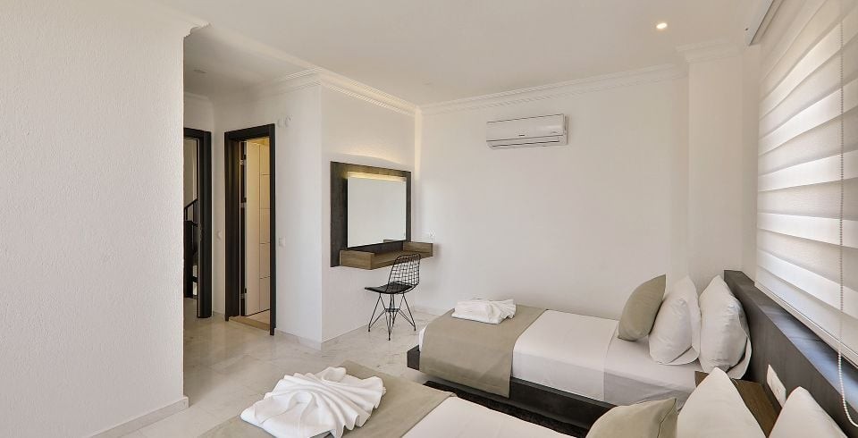 3. Yatak Odası: Süit genç yatak odası olup, 2 adet tek kişilik yatak, komodin, makyaj masası, elbise dolabı, klima, ve banyo tuvalet bulunmaktadır.