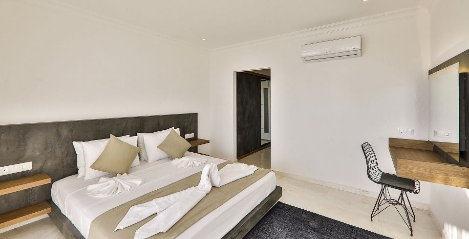 5. Yatak Odası: Süit aile yatak odası olup, 1 adet çift kişilik yatak, komodin, makyaj masası, elbise dolabı, klima, ve banyo tuvalet bulunmaktadır.