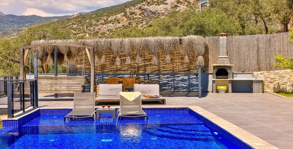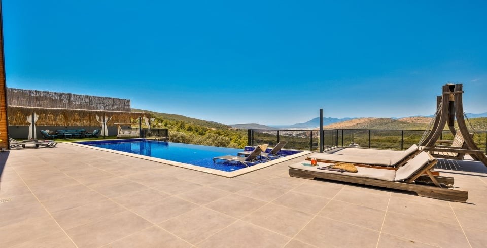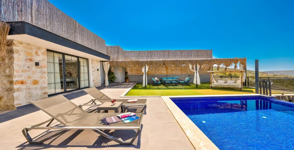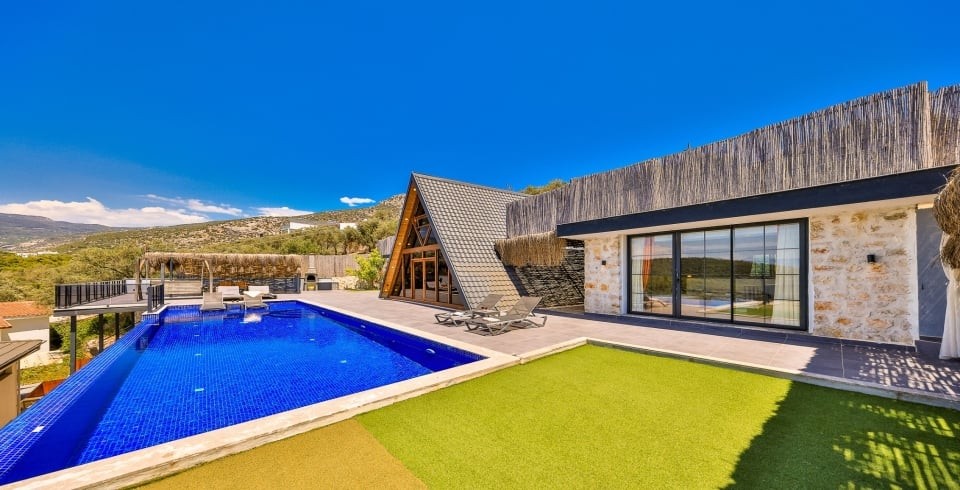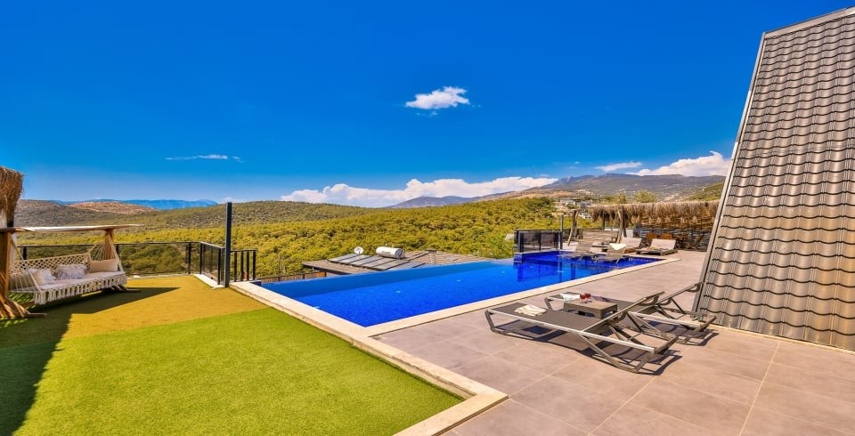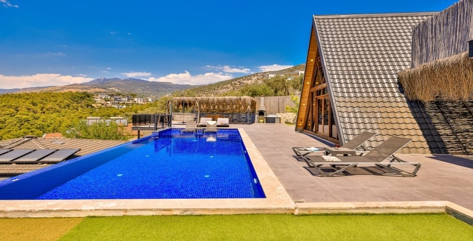 Villa Madrigal, Kalkan Akbel  mevkiinde konumlanmakta olan yeşilliklerle kaplı muhteşem doğa manzarasına hakim kiralık villalarımız arasında yer almaktadır. Şık ve konforlu bir şekilde dekore edilen yazlık villamızda 3 adet yatak odası bulunmakta olup 6 kişiye konaklama imkanı sağlamaktadır. Aynı zamanda çift kişilik yatak odalarından bir tanesinde tüm yılın yorgunluğunu atabileceğiniz jakuzi mevcuttur. Havuz ve havuz terası korunaklı hale getirilmiştir, dışarıdan bir kimse tarafından görünmemektedir. Sevdiklerinizle doğa içerisinde sakin bir tatil geçirmek için Villa Madrigal ’i  tercih edebilirsiniz.