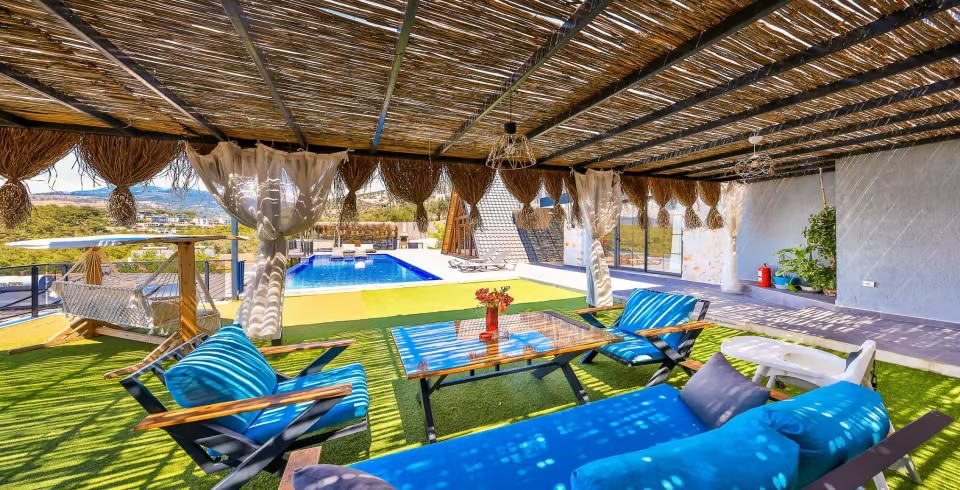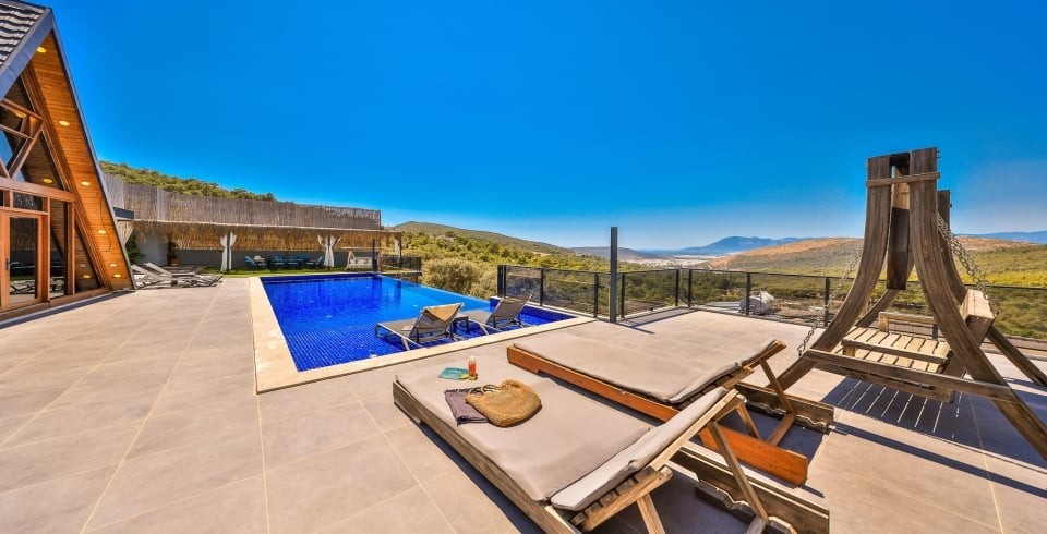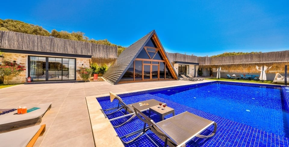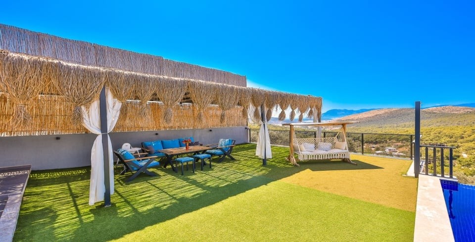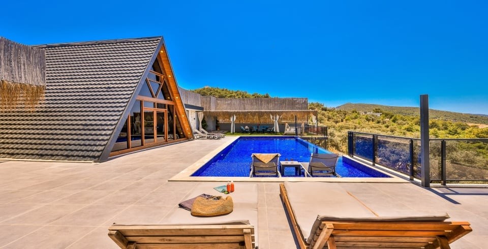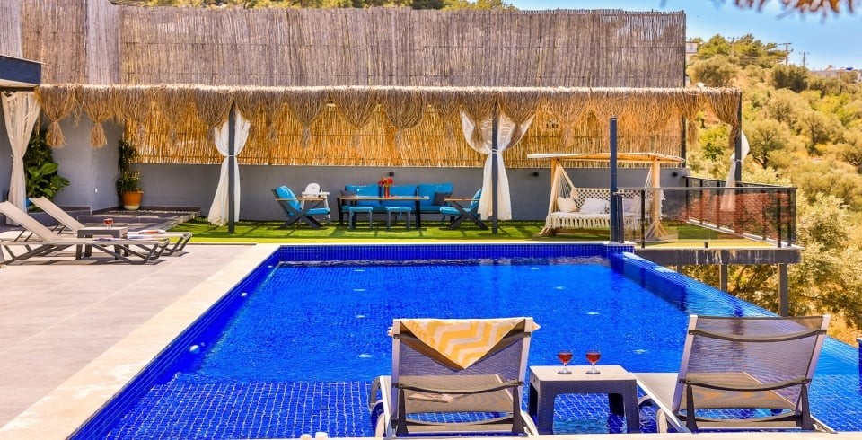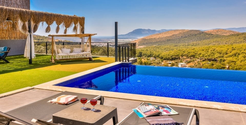 Villa Madrigal, Kalkan Akbel  mevkiinde konumlanmakta olan yeşilliklerle kaplı muhteşem doğa manzarasına hakim kiralık villalarımız arasında yer almaktadır. Şık ve konforlu bir şekilde dekore edilen yazlık villamızda 3 adet yatak odası bulunmakta olup 6 kişiye konaklama imkanı sağlamaktadır. Aynı zamanda çift kişilik yatak odalarından bir tanesinde tüm yılın yorgunluğunu atabileceğiniz jakuzi mevcuttur. Havuz ve havuz terası korunaklı hale getirilmiştir, dışarıdan bir kimse tarafından görünmemektedir. Sevdiklerinizle doğa içerisinde sakin bir tatil geçirmek için Villa Madrigal ’i  tercih edebilirsiniz.