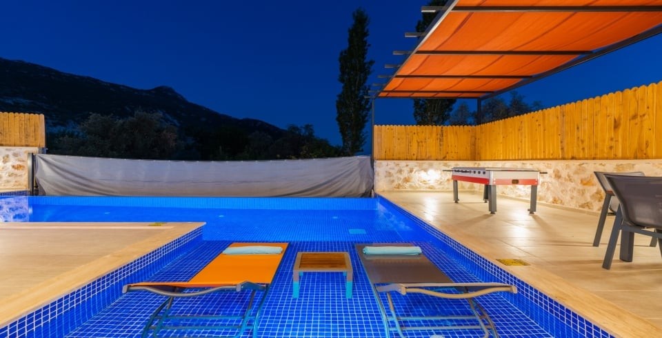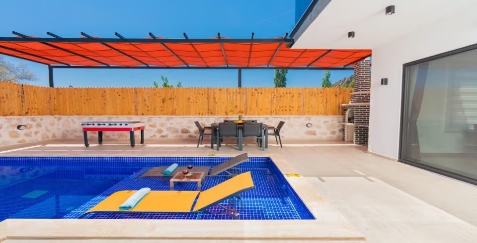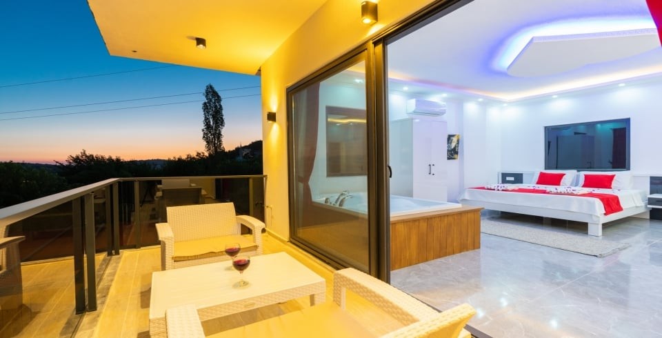 Antalya'nın büyüleyici Kaş, Kalkan, İslamlar bölgesinde yer alan Villa Palmiye İslamlar, doğa manzarası ve özel detaylarıyla huzurlu bir tatil deneyimi sunuyor. 2 yatak odası ve 4 kişilik kapasitesiyle hem balayı çiftleri hem de çekirdek aileler için tasarlanmış bu lüks villa, konforu ve mahremiyeti bir arada sunar.