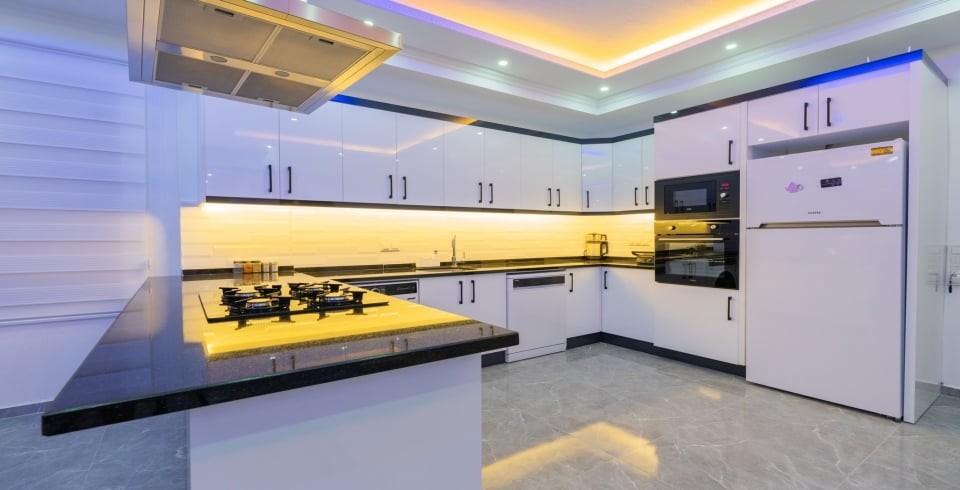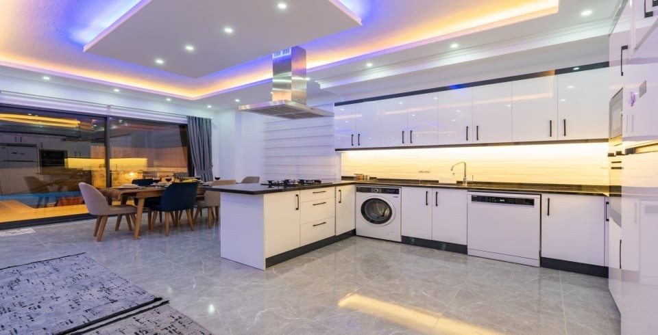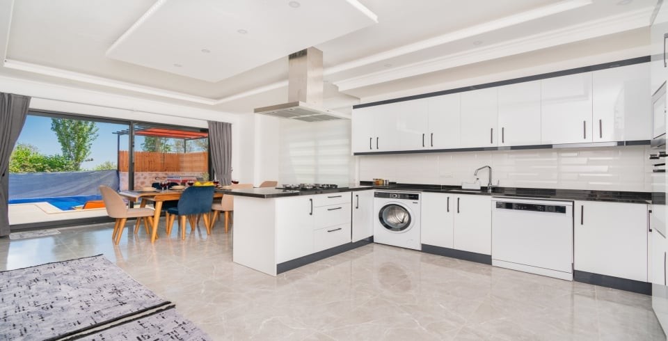 Mutfak: Villamızın mutfağında buzdolabı bulaşık makinası, çamaşır makinası, 4 kişilik yemek takımı bulunmaktadır.