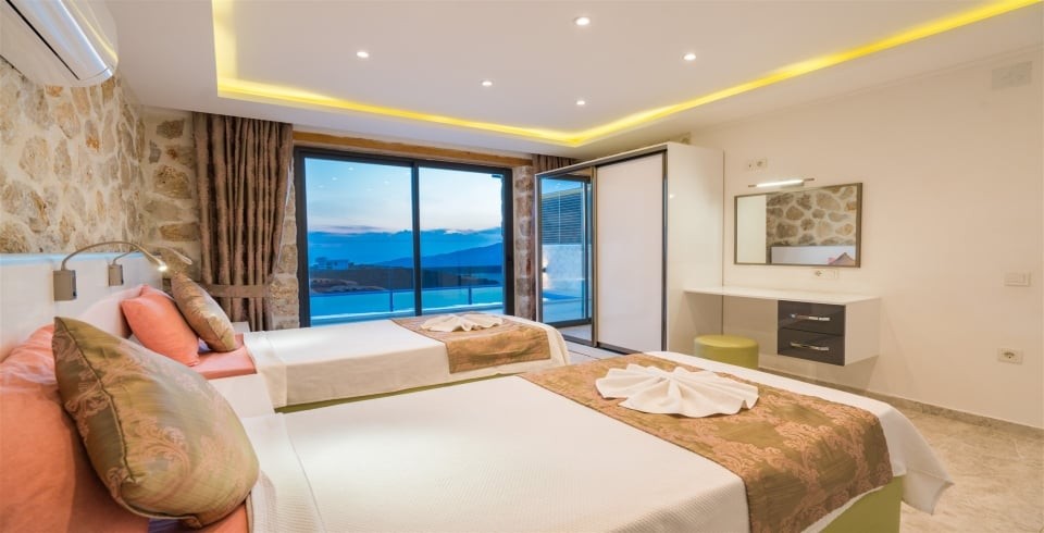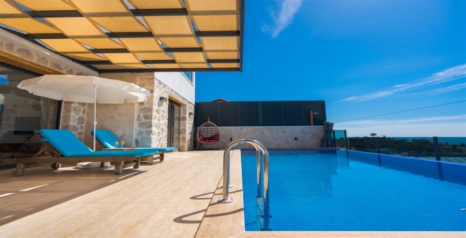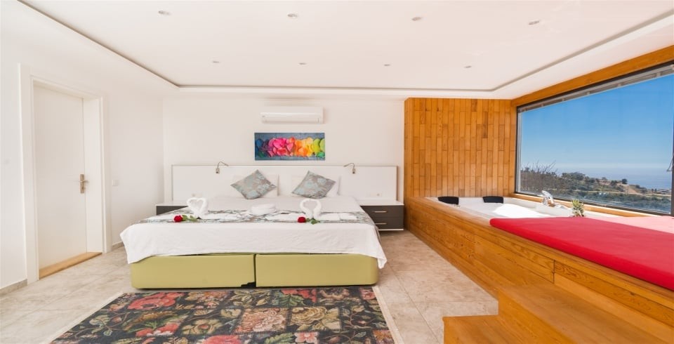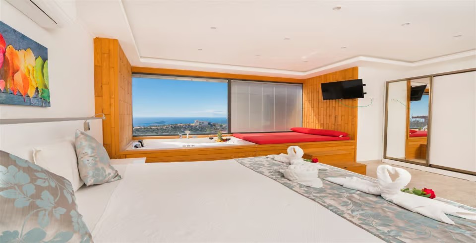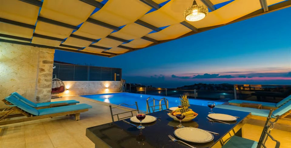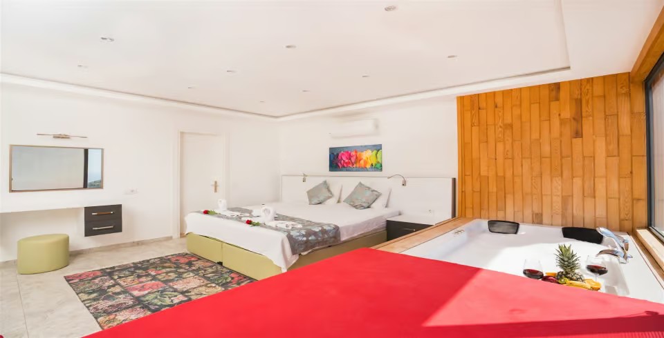Villa Reis 2, Kalkan’ın Kördere bölgesinde lüks ve huzurlu bir tatil deneyimi sunuyor. 2 yatak odalı ve 4 kişilik kapasitesiyle balayı çiftleri ve çekirdek aileler için mükemmel bir tercih. Korunaklı özel havuzu, jakuzisi ve muhteşem deniz manzarasıyla konforlu bir tatilin kapılarını aralıyor. Geniş terası ve şık tasarımıyla hem dinlenme hem de keyifli anlar için ideal bir ortam sunuyor.