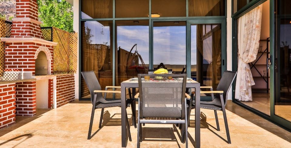 Havuz ve Bahçe : Muhteşem gün doğumuna şahit olacağınız ve gün batımı karşısında nutkunuzun tutulacağı bahçemizde, deniz manzarasına sahip korunaklı özel yüzme havuzu, güneşlenme terası, şezlong, şemsiye bulunmaktadır. Eşinizle beraber kendinizi dış dünyadan soyutlayabileceğiniz oturma yerimiz mevcuttur. Bahçemizin keyfini doyasıya çıkarmanız adına mangal ve yemek masası da yer almaktadır.