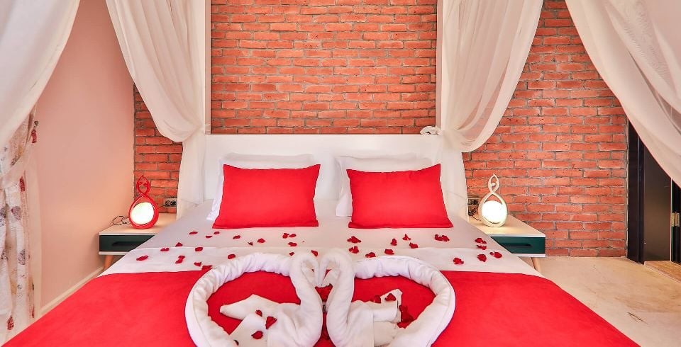 Yatak Odası : Sakin ve huzur dolu olan çift kişilik yatak odamızda ferahlamak istediğinizde açabileceğiniz klima, televizyon, makyaj masası, komodin, saç kurutma makinesi, elbise dolabı, lavabo ve banyo bulunmaktadır. Ayrıca lüks bir konfor içinde tatilinizi geçirmeniz adına odamızda jakuzi bulunmaktadır.