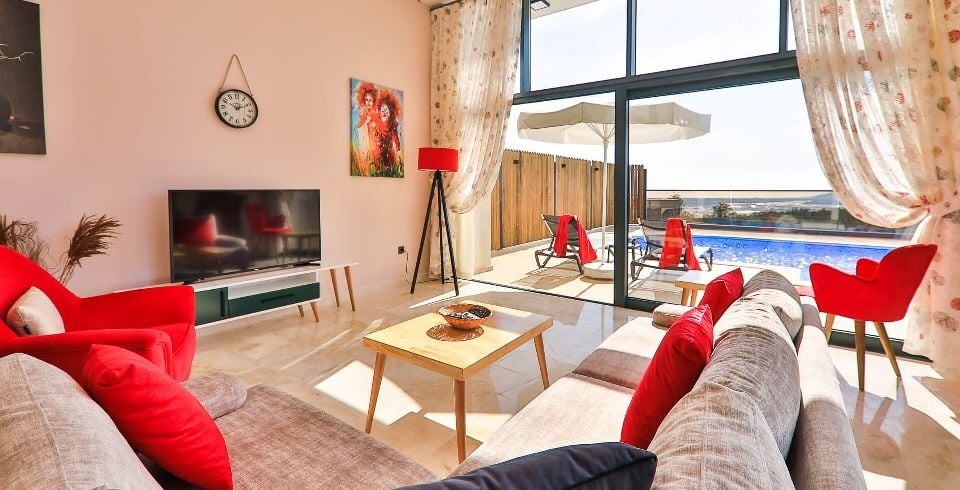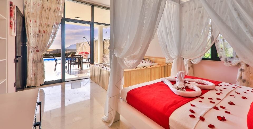 Kalkan’ın Üzümlü mevkisin de yer almakta olan kiralık yazlık villamız ile huzurlu ve sakin bir tatil deneyimi gerçekleştirebilirsiniz. Villa Sevi’nin inşaatı 2020 yılında tamamlanmıştır ve siz özel misafirlerimize son derece uygun tasarlanmıştır. Şüphesiz Kalkan’ın en güzel manzarasına karşı olan son derece itinayla tasarlanmış lüks villamız 1 yatak odalı, balayı çiftlerimizin tercih edeceği jakuzili balayı villasıdır. Muhafazakar villamızın havuz ve havuz terası dışarıdan korunaklıdır.