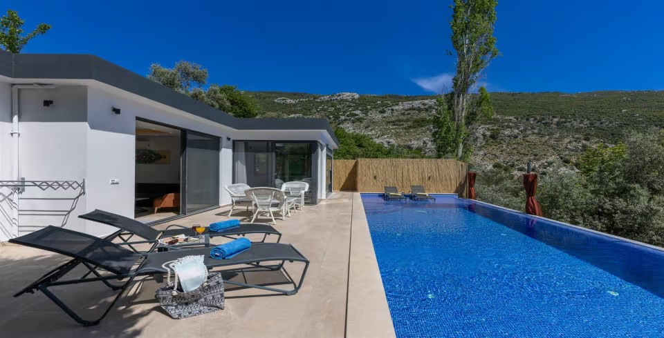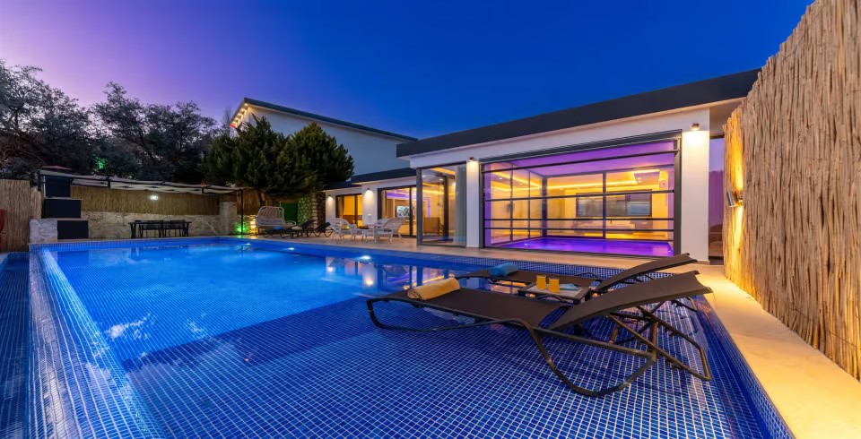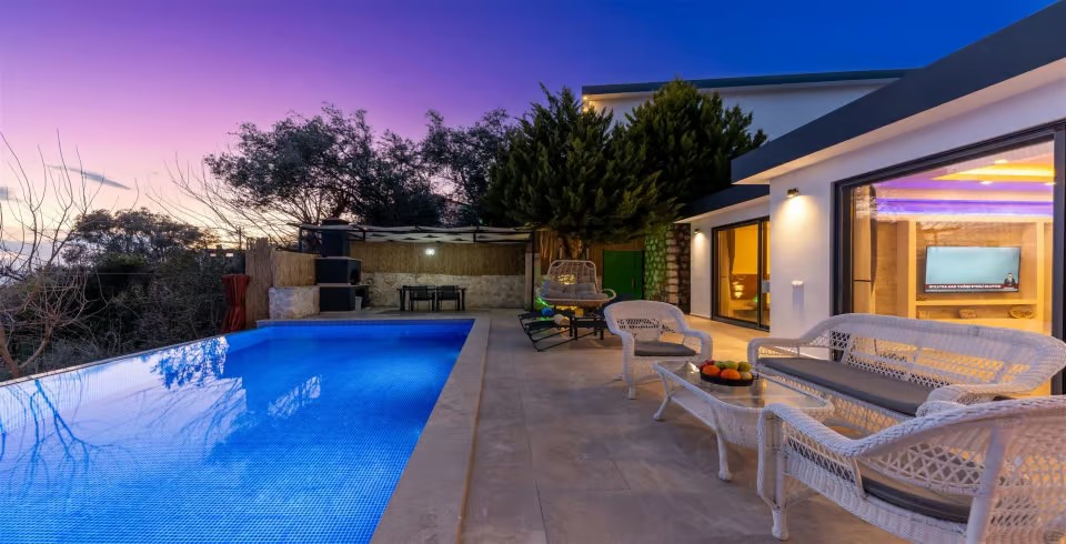 Kalkan İslamlar Bölgesinde 2 yatak odalı 4 kişilik özel yüzme havuzuna sahip kiralık muhafazakar villamızdır. Villamızda bir ana yatak odası ve 1 tane de çocuk yatak odası bulunmaktadır. Villamızın içerisinde ayrıca kış ve bahar aylarında kullanıma açık ısıtma havuzu bulunmaktadır. Villamız balayı çiftleri ve çekirdek aileler için uygun bir seçenek olup doğa ile iç içe tatil düşünenler için uygun tatil villasıdır.