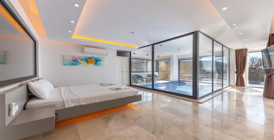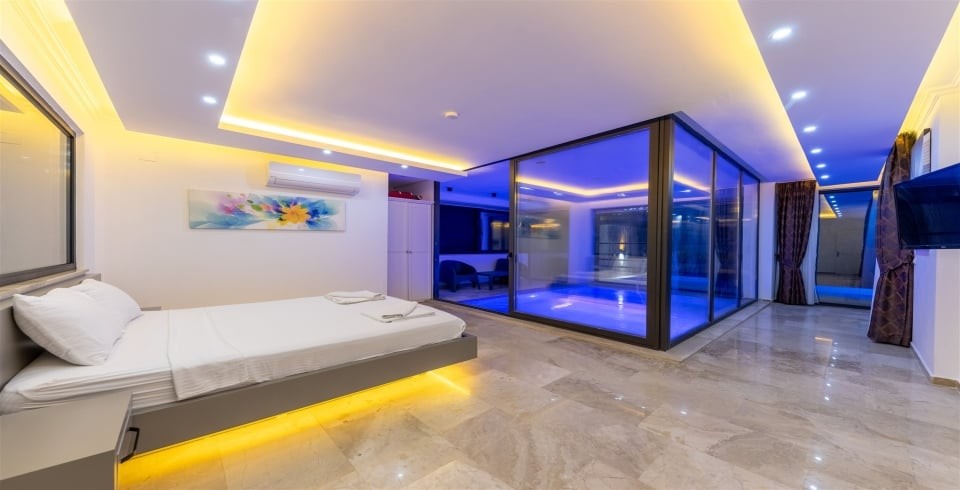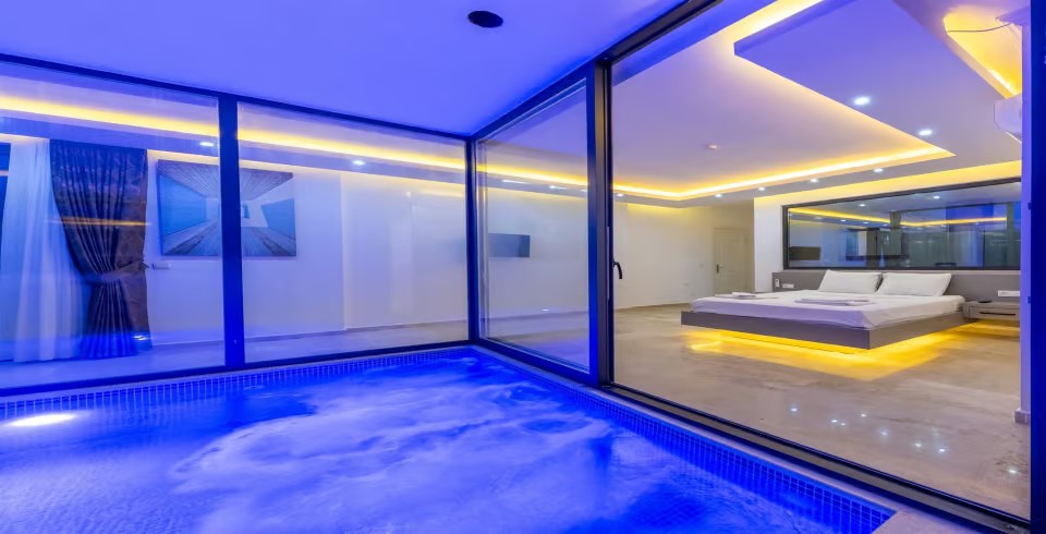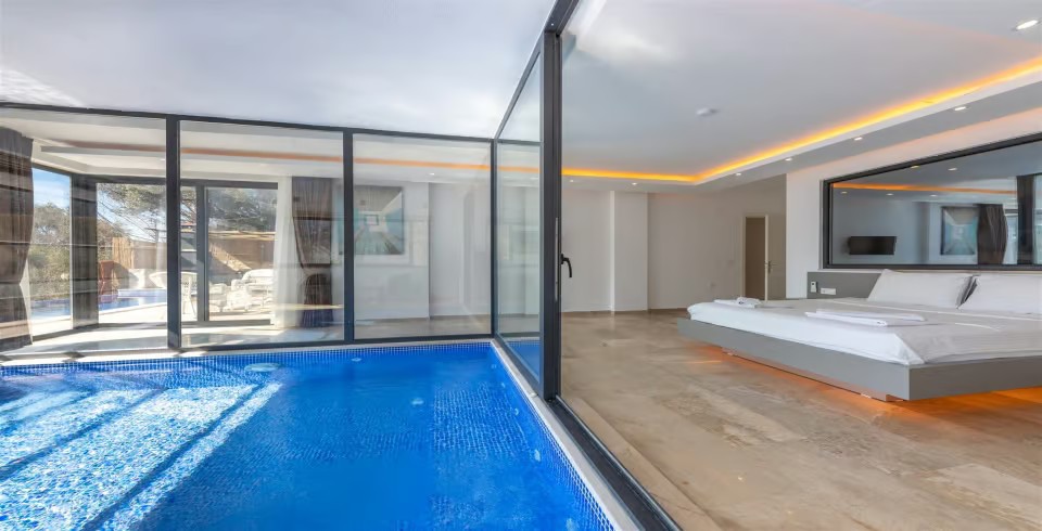 Havuz : Villa içerisinde 4,5 m x 3,5 m ölçülerinde kapalı havuz yer almaktadır. Havuz terası korunaklı olup dışarıdan gözükmemektedir.