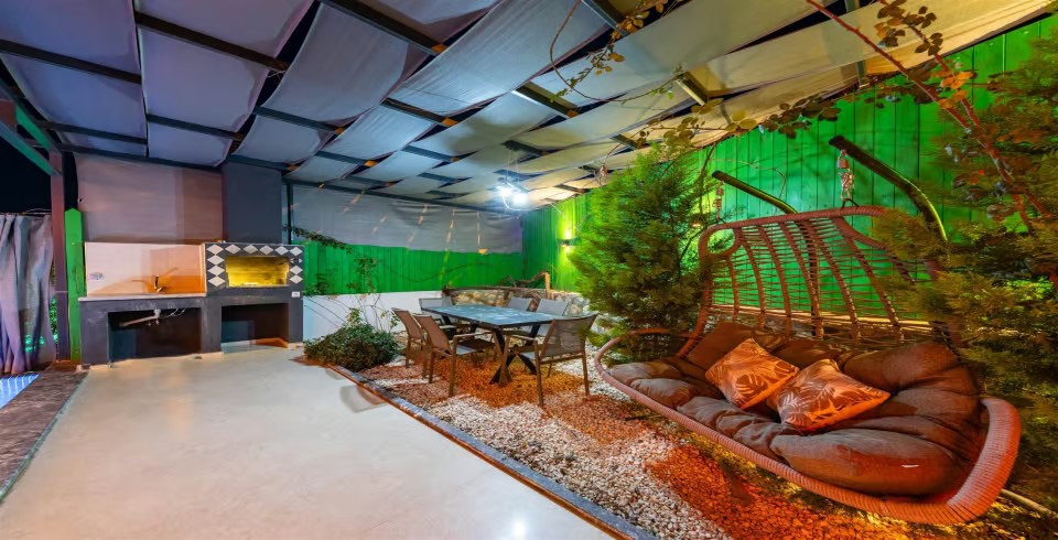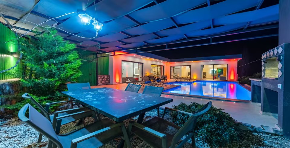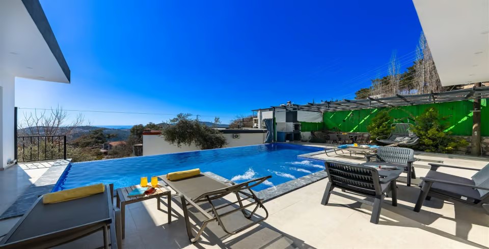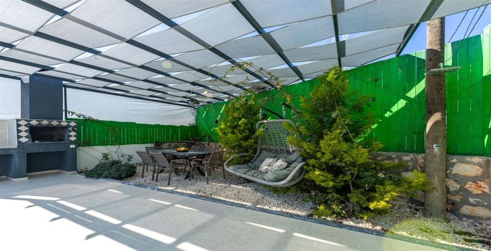 Havuz ve Bahçe : Korunaklı havuzlu bahçeye sahip olan villamızın şüphesiz en çok tercih edeceğiniz yer olacaktır. Korunaklı, dışarıdan görünmeyen bahçemiz adeta göz büyülüyor. Villamızın havuz terasında salıncak, şezlong, barbekü bulunmaktadır.