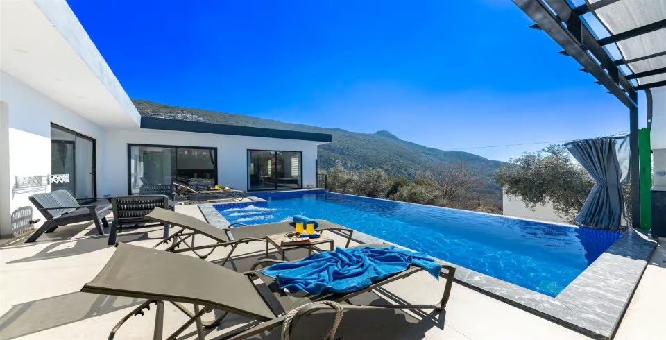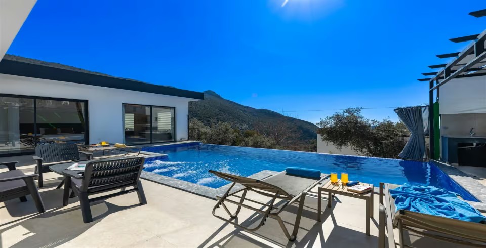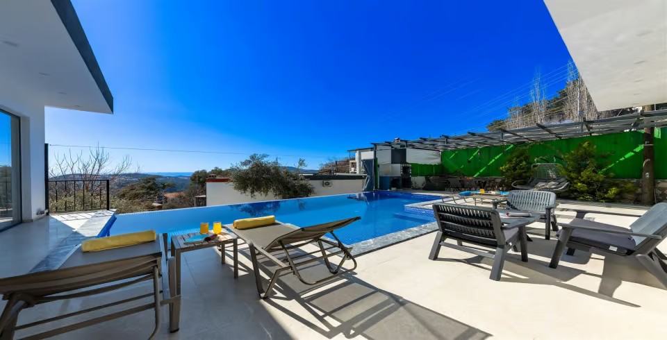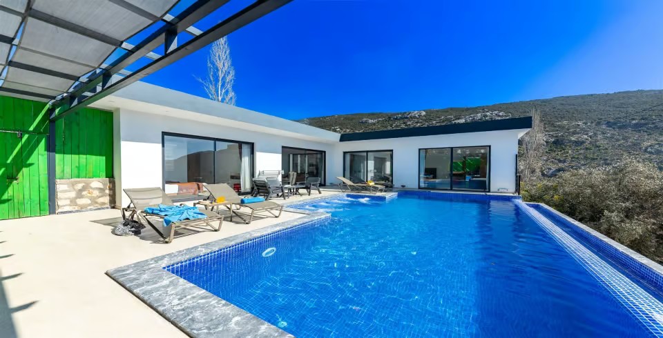 Kalkan İslamlar Bölgesinde 3 yatak odalı 6 kişilik özel yüzme havuzlu kiralık villamız doğa içerisinde konumlanmıştır. Villamızın Havuz ve havuz terası korunaklı olup dışarıdan gözükmemektedir. Villa sahibi tarafından özenle dizayn edilmiş villamızda bilardo masası bulunmaktadır. Villamızda merkezi konuma kendi aracınız ile 7-10 dk mesafede bulunmakta olup market ve restoranta yakın mesafede bulunmaktadır.