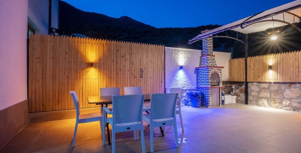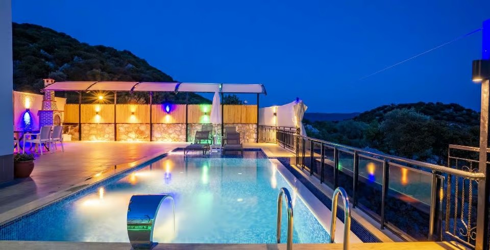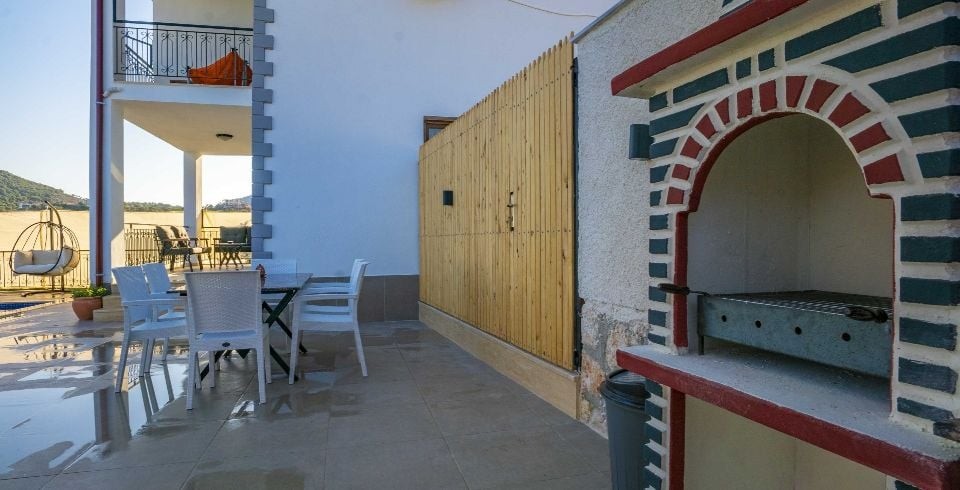 Bahçe : Villamızın korunaklı bahçesi içerisinde dışarıdan bakıldığında görülmeyecek şekilde korunaklı özel yüzme havuzu, açık hava jakuzisi, şezlong ve şemsiye ve pergule, yemek masası ve sandalyeler, salıncak ,barbekü, yer almaktadır.