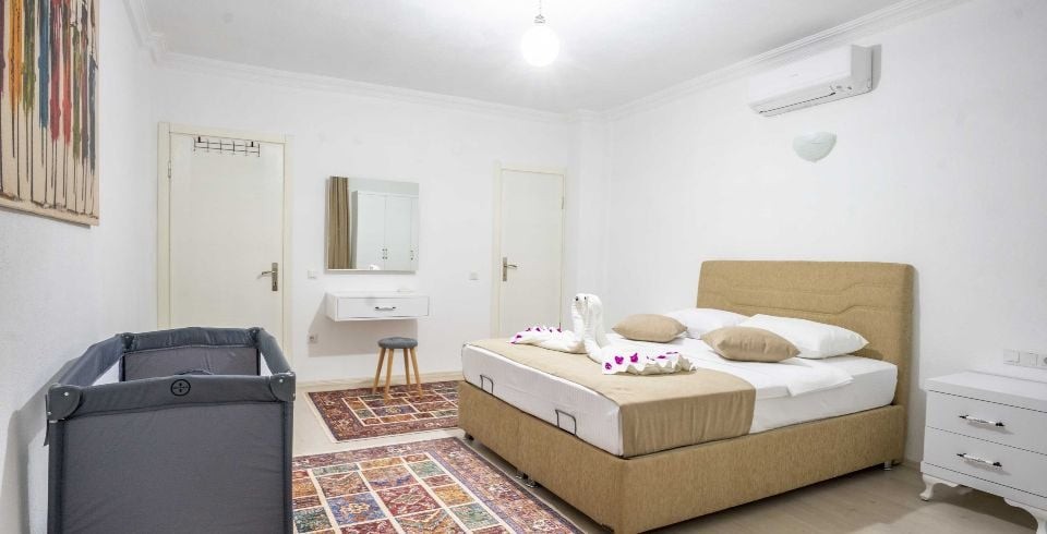 2. Yatak Odası: 1 Adet Çift Kişilik Yatak, Klima, Gardırop, Komodin, Makyaj Masası ve Ebeveyn Banyosu bulunmaktadır.