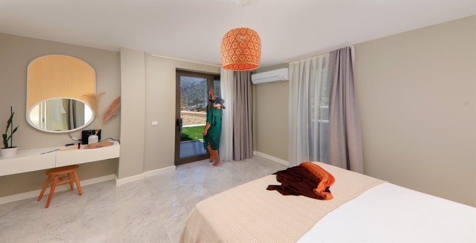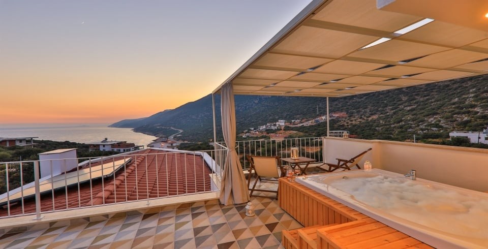 Kaş’ın Gökseki mevkiinde bulunan deniz manzaralı lüks kiralık villamız Villa Vibes, modern ve şirin yapısı ile sizlere muhteşem bir tatil imkanı sunuyor. 2 adet yatak odası bulunan kiralık villamız 4 kişi konaklama kapasiteli olup balayı çiftleri ve çekirdek aileler için oldukça uygundur. Balayı villası olarak da tercih edebileceğiniz kiralık villamızda, tatiliniz boyunca ihtiyacınız olabilecek tüm temel eşyalar mevcut olup kullanımınıza hazır durumdadır. Teras katı jakuzili kiralık villamızın bir yatak odasında küvet bulunmaktadır. Market ve restoranlara oldukça yakın olan villamız sizlere kusursuz bir tatil sunabilmek için özenle tasarlanmıştır. Aydınlık ve ferah bir yapısı olan ekonomik kiralık villamızın bahçesinde kendisine ait özel yüzme havuzu, güneşlenme alanı, yeşil alan, salıncak, langırt, yemek masası, oturma alanı ve barbekü bulunmaktadır. Denize ve merkeze yakın kiralık lüks villamız Villa Vibes’te muhteşem doğa ve deniz manzarası eşliğinde sevdiklerinizle birlikte keyifli zamanlar geçirebilir ve tüm yorgunluğunuzu unutabilirsiniz. Doğa içerisinde ekonomik kiralık villamız denize sadece 500 metre uzaklıkta bulunmakta olup, Kaş merkeze ise sadece 3 km uzaklıktadır.