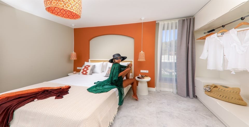 1.Yatak Odası: 1 adet çift kişilik yatak, klima, komodin, makyaj masası, elbise dolabı, küvet, banyo ve tuvalet bulunmaktadır.
