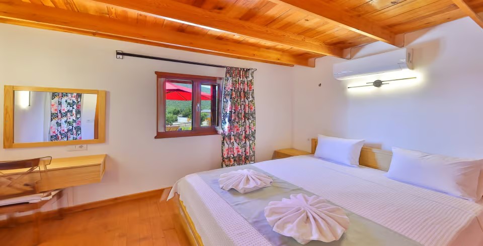 Kaş Sarıbelen mevkisinde bulunan Villa Wooden House, 3 yatak odalı 5 kişi konaklama kapasitesine sahip kiralık villadır. Geniş bahçesi bulunan villamız gözlerden uzak, doğa içerisinde huzurlu bir villa tatili arayışında olan misafirlerimiz için oldukça uygun bir seçenektir. Doğa ile uyumlu olarak inşa edilen villamız siz değerli misafirlerimiz için özenle dizayn edilmiştir.
