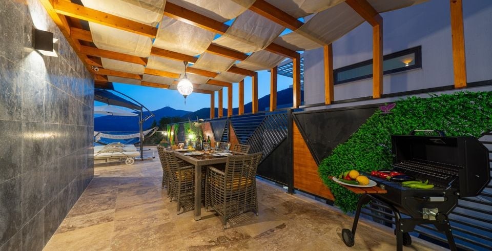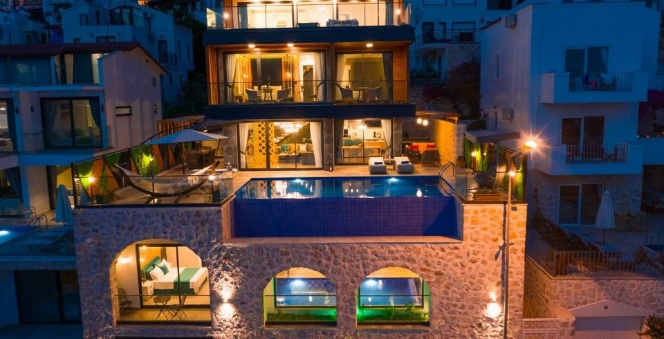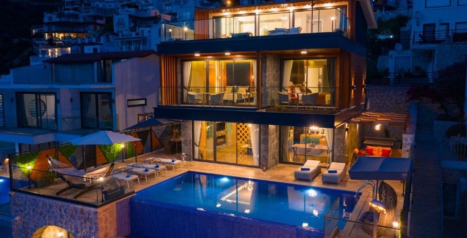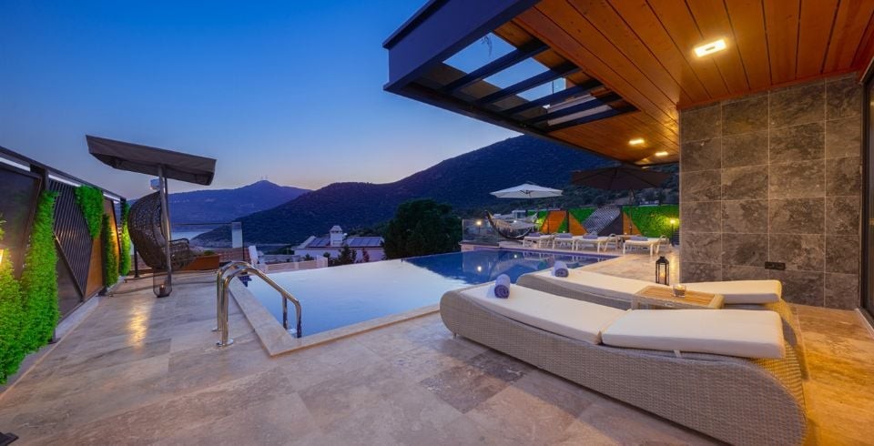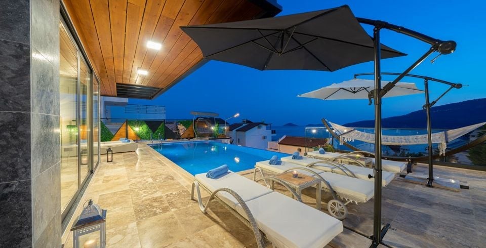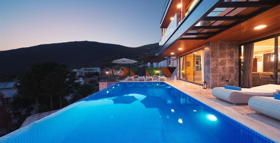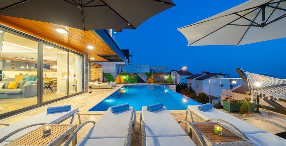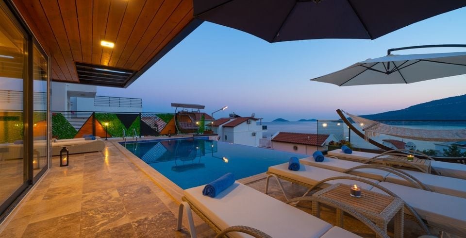 Villamız Kalkan'ın Kalamar bölgesinde konumlanmaktadır. 4 Yatak odalı 8 Kişilik kapasiteye sahip olan villamız mükemmel deniz ve doğa manzarasına sahiptir. Halk plajına yürüme mesafesinde olan Villa Esra Evi ultra lüks bir dizayna sahiptir. Ayrıca en süit yatak odasında jakuzi de bulunmakta olup siz değerli müşterilerimize oldukça konforlu bir tatil sunmaktadır. Villamızın en üst katında küçük otantik bahçe, oturma alanı ve salıncak bulunmaktadır. Özel havuzun hemen yan tarafında oturma alanı ve barbekü de bulunmaktadır. Kiralık yazlık villamızın oldukça konforlu oturma koltuk takımı, TV ünitesi de bulunmaktadır. Villamız da Kış ayları için ısıtmalı havuzu, zaman geçirmek için ise langırt ve masa tenisi bulunmaktadır. Villamızda ayrıca sauna da mevcuttur.