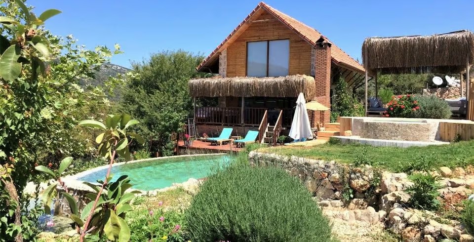 Bahçe : Manzaraya ve güney yönüne hakim ahşap veranda konforunuz ve keyifli anlarınız için tasarlandı. Geleneksel köy ocaklıklarından esinlenerek yapılan açık şömineniz odun ateşi keyfini yaşayabilmeniz, aynı zamanda unutulmaz lezzetler pişirebilmeniz için. Doğanın günlük ritmini hissedebileceğiniz, kuş seslerini ve çobanların çıngıraklarını dinleyebileceğiniz serin, huzurlu ve konforlu bir mekan. Özel bahçede güneşlenme alanı, özel havuz, şezlonglar, güneş şemsiyesi, bahçe masası ve sandalyeler, 4-5 kişilik veranda bulunmaktadır.