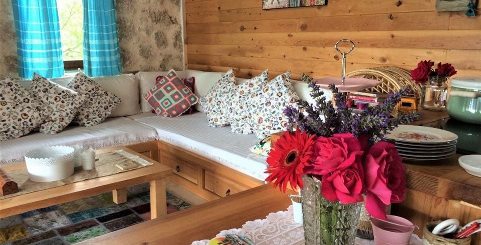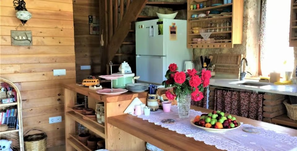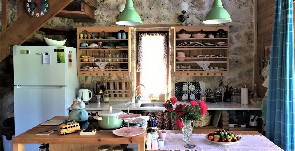 Mutfak : Sade bir yaklaşımla tasarlanan açık mutfağınızda, bahçenizden ve yakın çevrenizden bulabileceğiniz taze ve organik ürünlerle keyifli yemekler yapabilmeniz için ihtiyacınız olan her imkana sahipsiniz. Mutfak sohbetleri yapabileceğiniz 4-5 kişilik masa dışında ahşap verandada yer alan köy ocaklığı ve geniş oturma alanınızda doğayla baş başa odun ateşi keyifleri yaşayabilirsiniz. Mutfağımızda buz dolabı, bulaşık makinası,5 kişilik yemek masası, kaşık ve çatal takımı, tencere ve tava takımı, bardaklar bulunmaktadır.