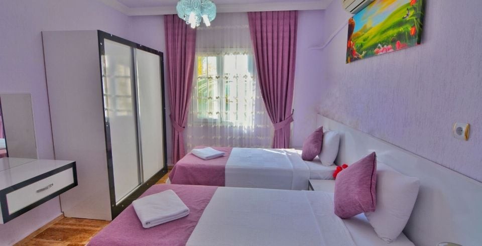 2. Yatak Odası : 2 adet tek kişilik yatak, klima, komodin ,elbise dolabı, makyaj masası, banyo ve tuvalet bulunmaktadır.