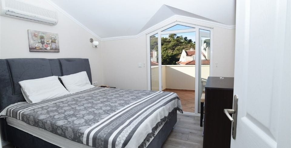 1. Yatak Odası : 1 adet çift kişilik yatak, klima, komodin, elbise dolabı, makyaj masası banyo ve tuvalet bulunmaktadır.