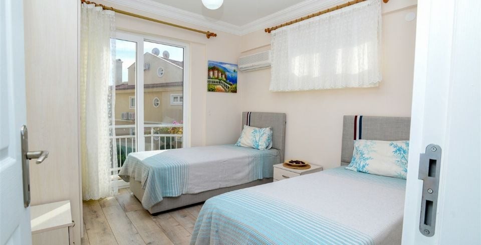 2. Yatak odası : 2 adet tek kişilik yatak. klima, komodin, elbise dolabı, makyaj masası, banyo ve lavabo bulunmaktadır.