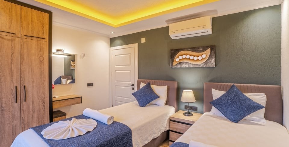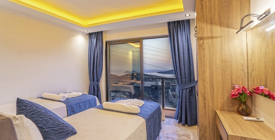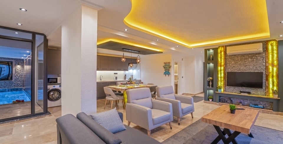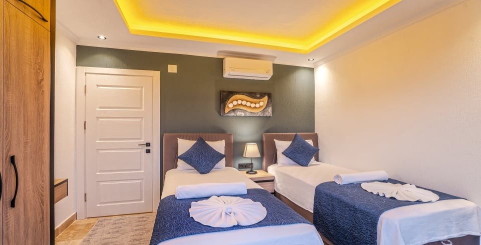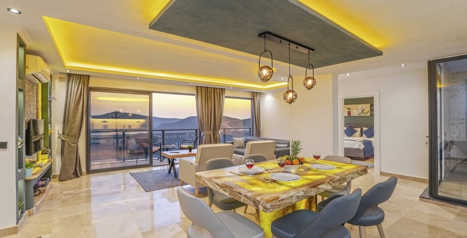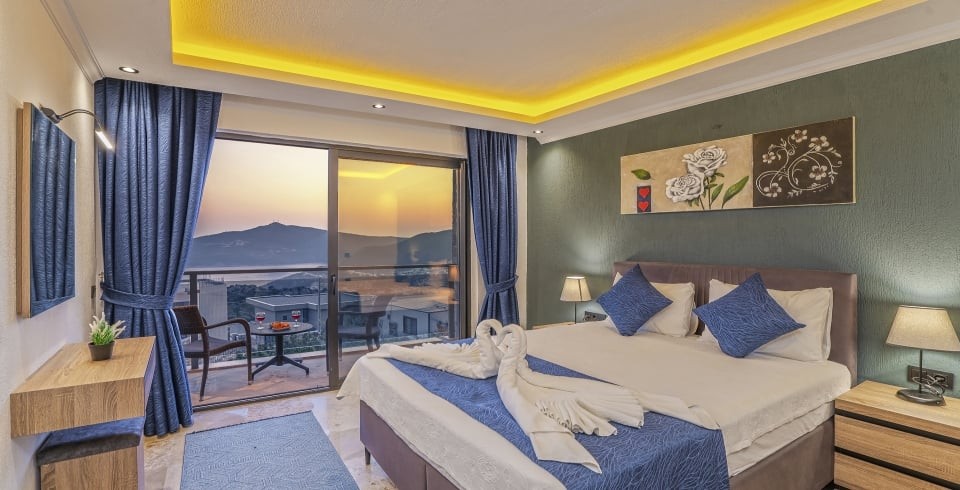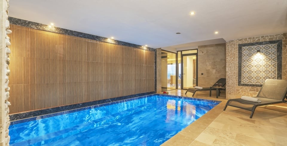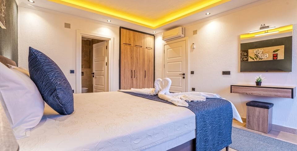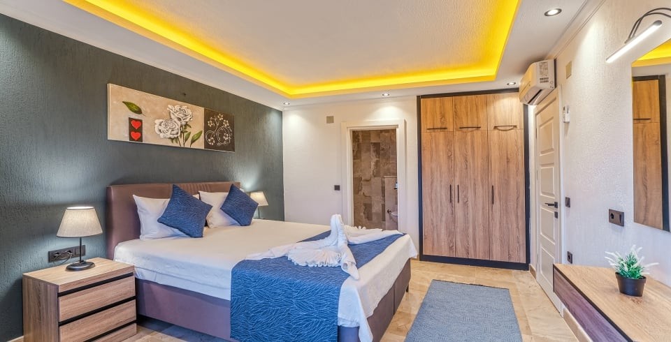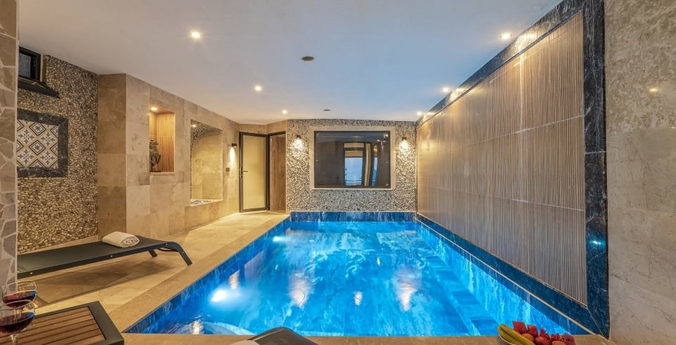 Kendinize özel bir tatil molası vermek istiyorsanız, Suit Almila tam size göre. Kalkan Kördere'de denize karşı konumlanan bu zarif suit, 2 yatak odasıyla 4 kişilik konaklama kapasitesine sahip. Her detayı özenle düşünülmüş; içeride sizi sadece bir tatil değil, aynı zamanda hamam, sauna ve kapalı havuz gibi rahatlatıcı olanaklar bekliyor.