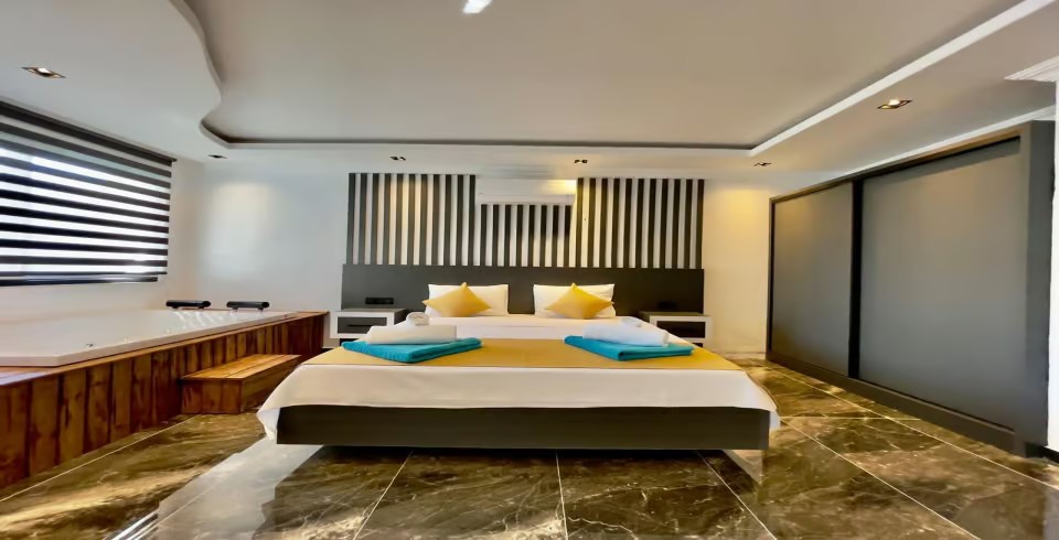 Suit Asil, Kalkan'ın huzur dolu Akbel bölgesinde, zarif tasarımı ve lüks detaylarıyla unutulmaz bir tatil sunuyor. 2 kişilik kapasitesiyle çiftler için tasarlanmış olan bu özel suit, konfor ve mahremiyeti ön planda tutuyor. Kapalı havuzu sayesinde dört mevsim tatil keyfi sunarken, yatak odasında yer alan jakuzisi romantik anlar yaşamanız için tasarlandı. Modern dekorasyonu ve şık detaylarıyla Suit Asil, özel ve bağımsız bir tatil deneyimi arayan çiftler için mükemmel bir tercih.