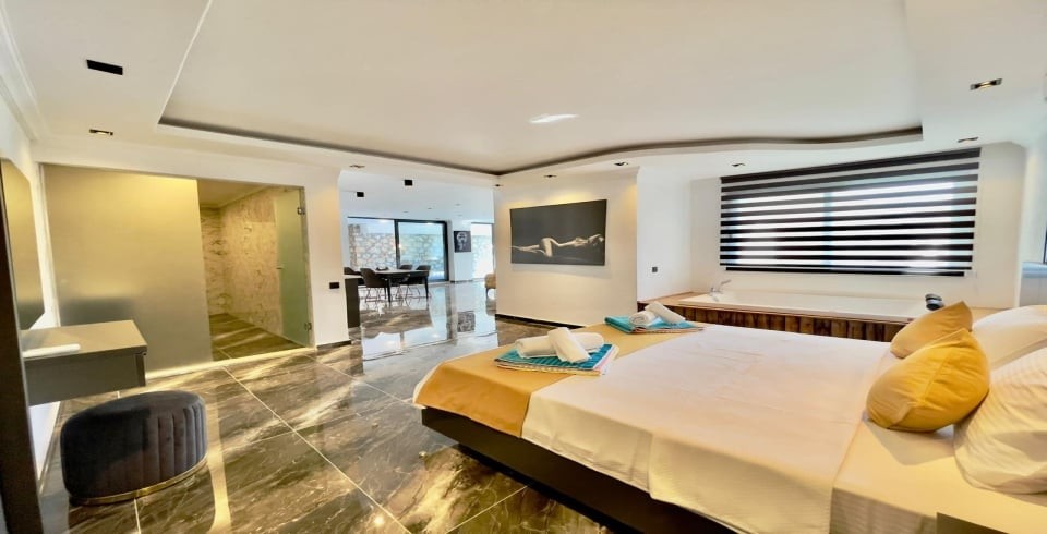 Not:Suitimiz, bir binanın parçası olup, üst katında farklı bir villa bulunmaktadır. Bu villa ile herhangi bir bağlantısı yoktur, bu sayede tamamen özel ve bağımsız bir konaklama sunar. Havuzda ısıtma sistemi bulunmamaktadır.