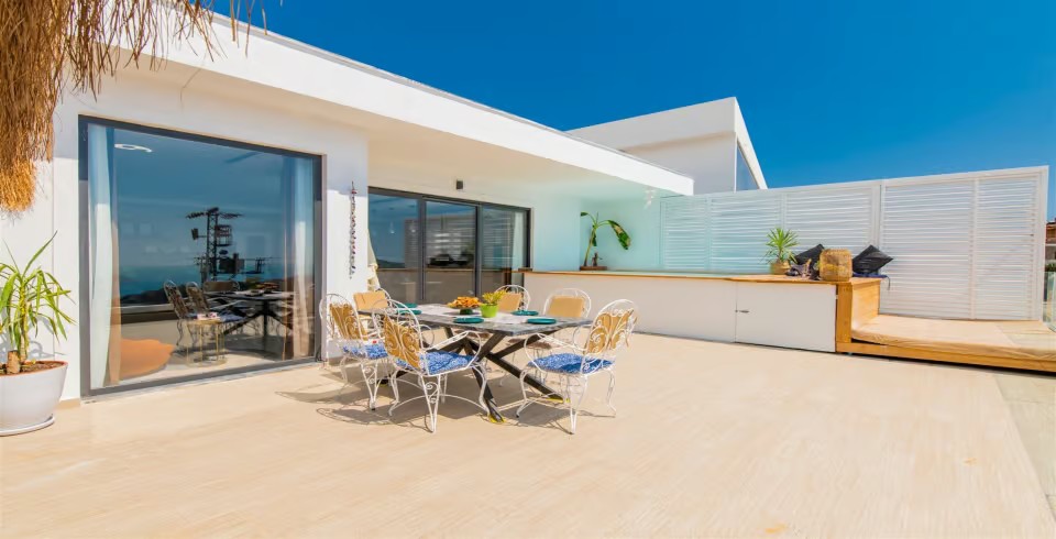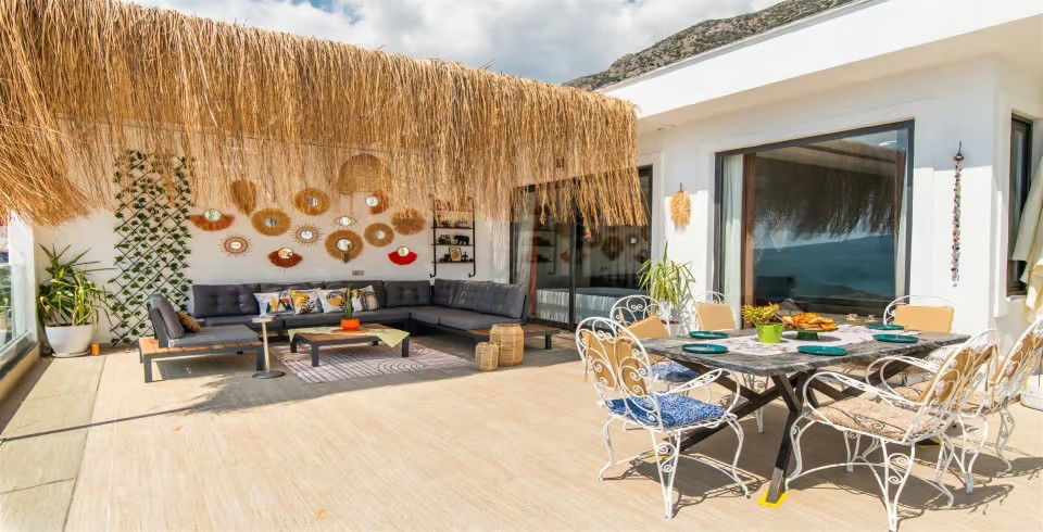 Teras: Özel jakuzi havuzu, güneşlenme alanı, barbekü alanı, oturma alanı, yemek masası bulunmaktadır.